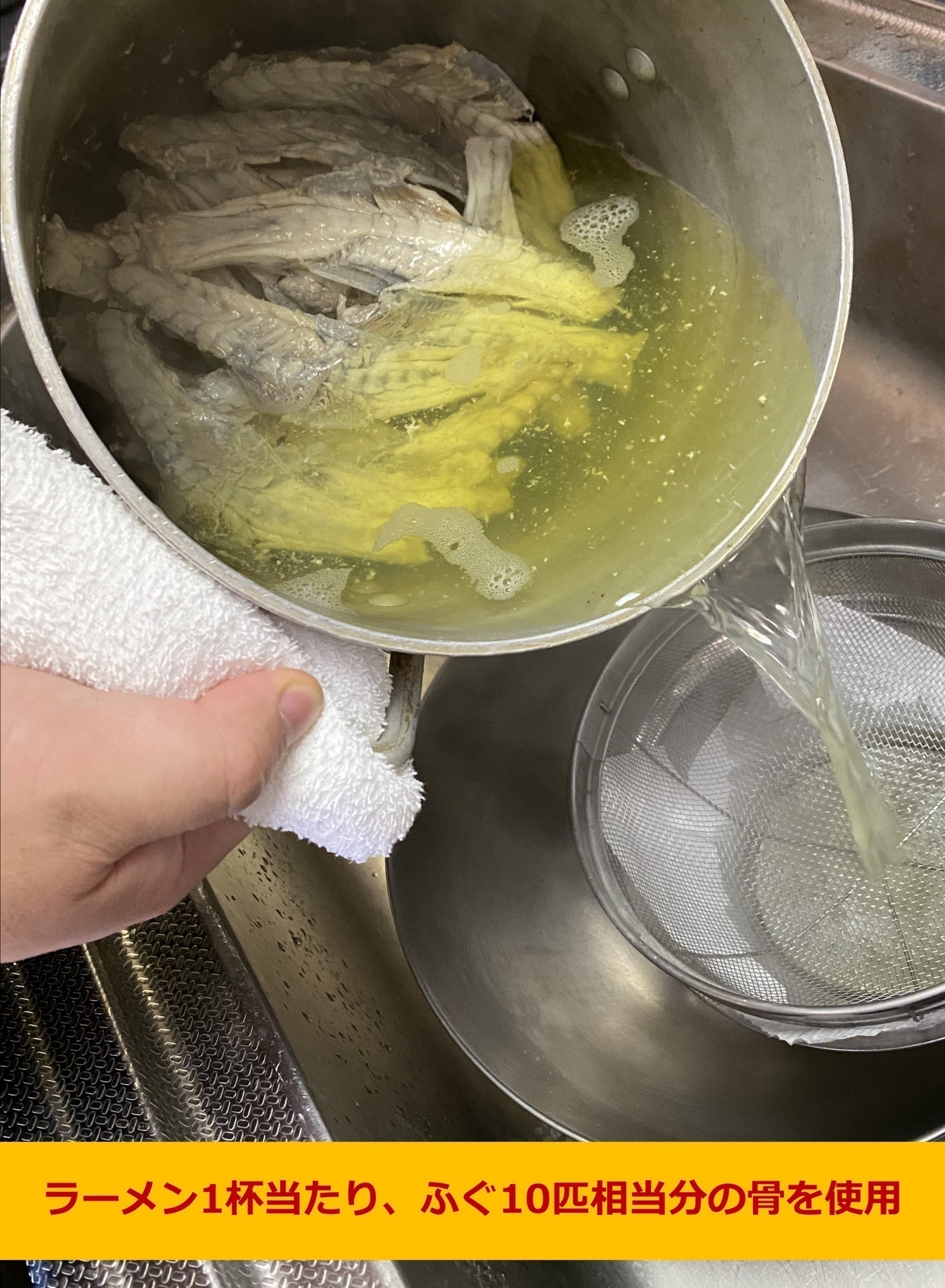 ふぐ10匹分の骨から抽出された旨みを1杯に閉じ込めた贅沢かつ上品なラーメンが誕生!