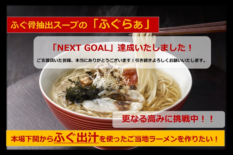 ふぐのまち「下関」ならではのご当地ラーメン「下関ラーメン ふぐらぁ」を全国へ届けたい!