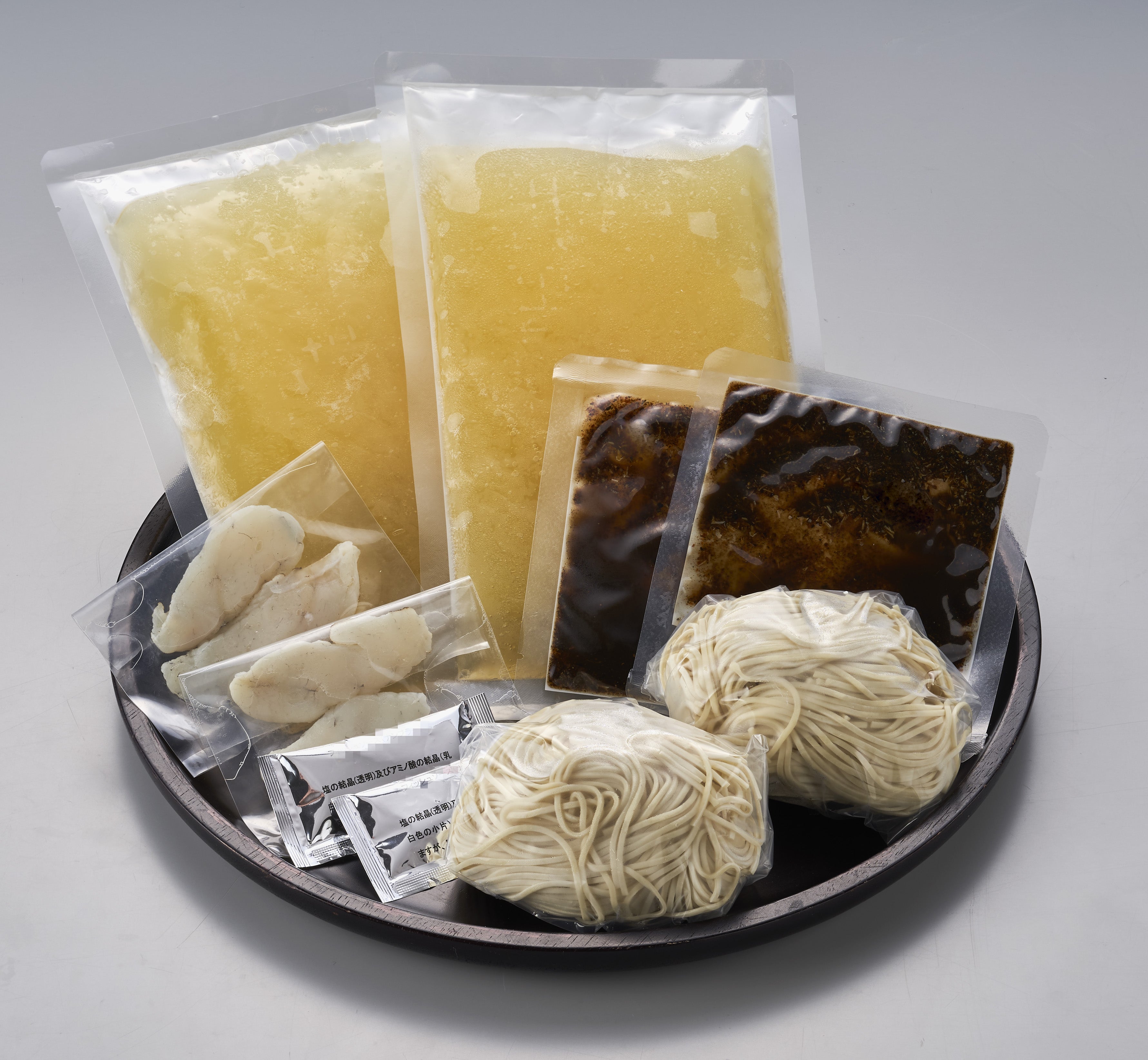 内容:麺×2、スープ×2、ふぐ身炙り×2,ふぐ油×2