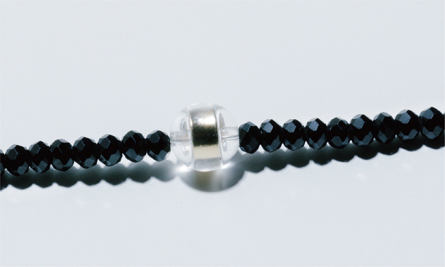 ■素材:天然ブラックスピネル(約4mm×2.5mm)、マグネットボールゴールドカラー×2(8mm)、マンテルパーツステンレス