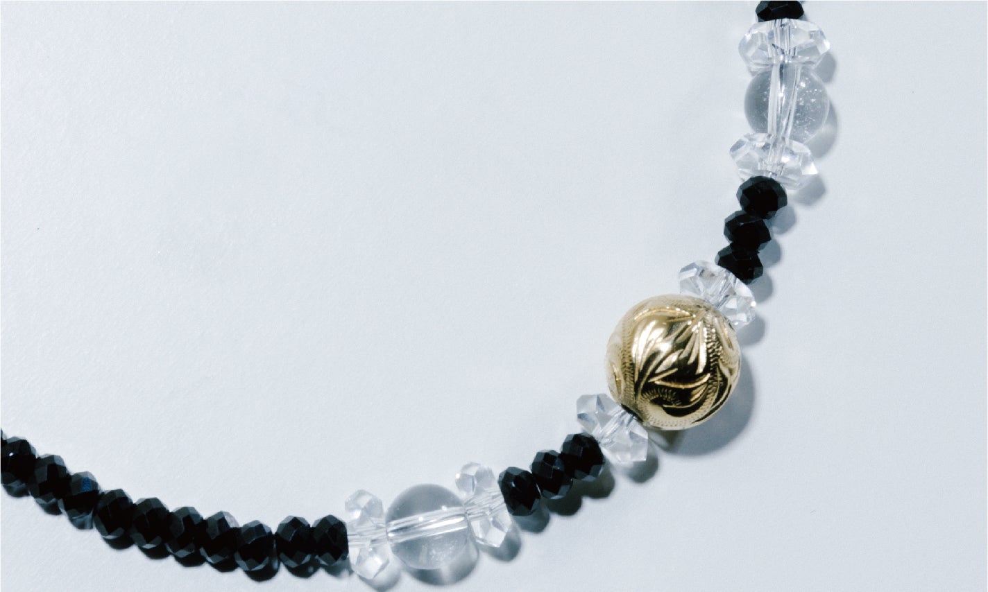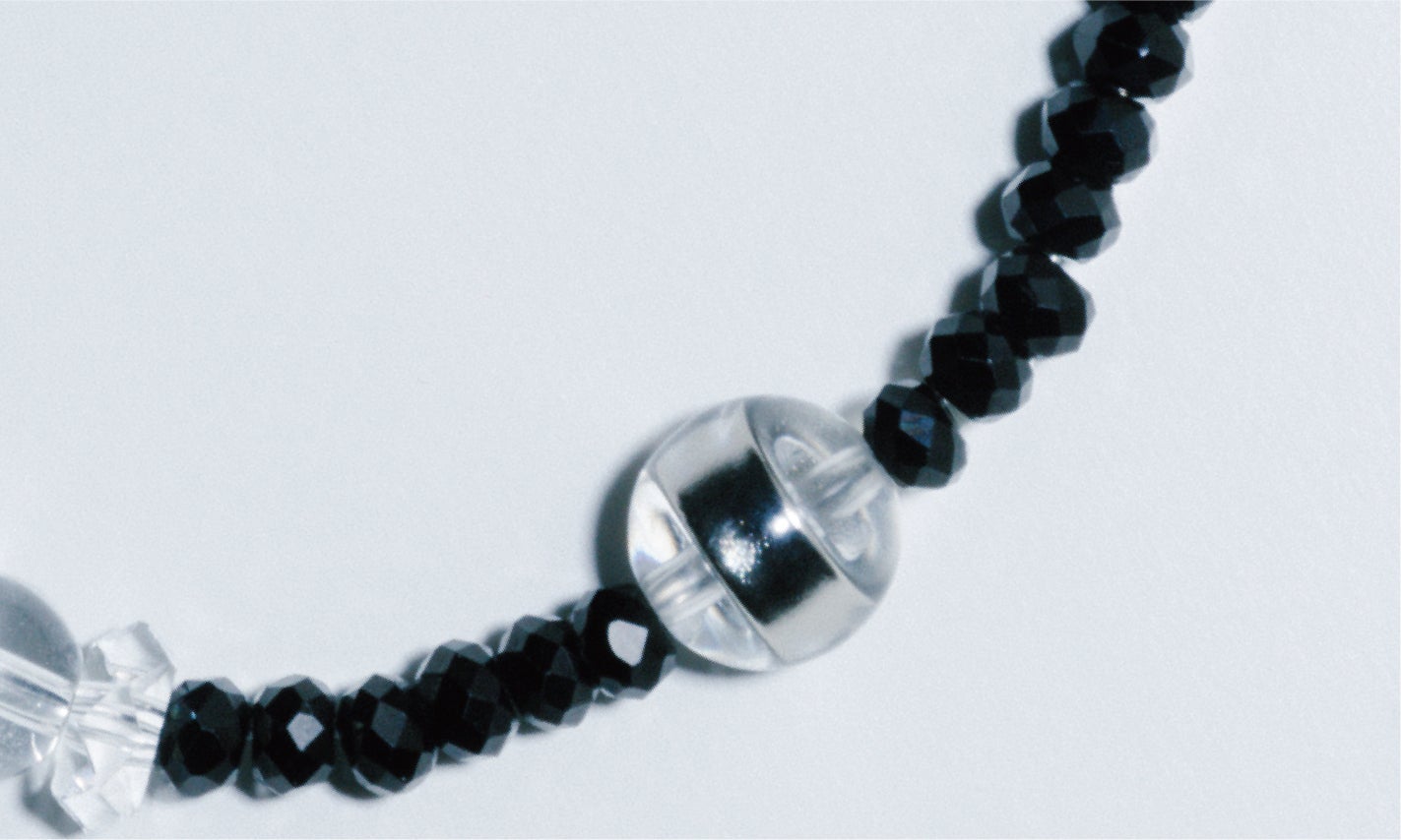 精神を安定させて向上心をもたらすとされる『ブラックスピネル』。水晶と組み合わせることでメンタルをよりポジティブに導きます。