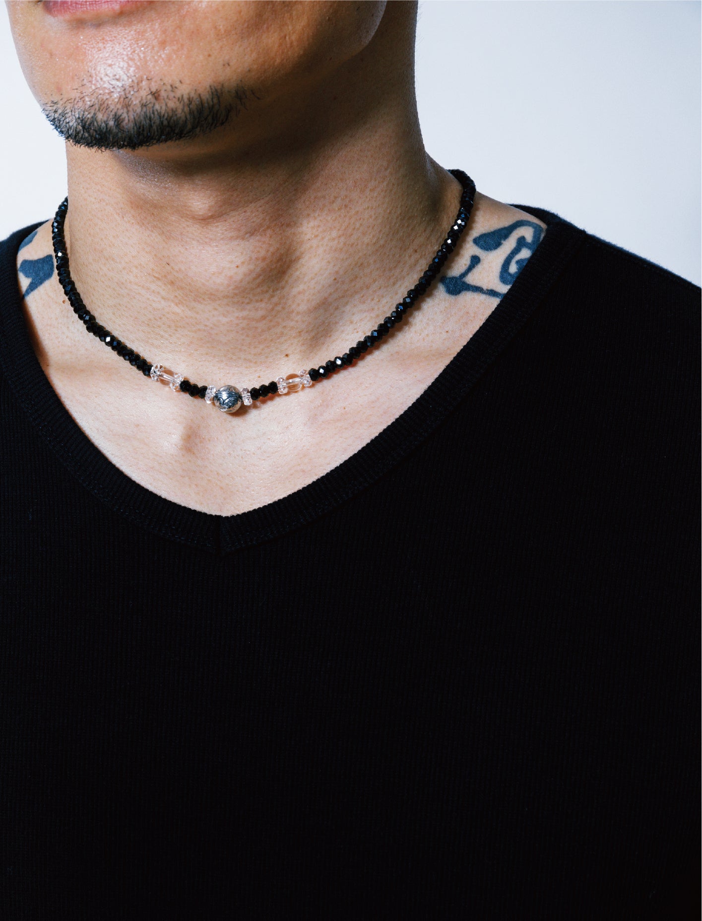 ・LUKA-118-0001:シルバーステンレスボールネックレス(ブラックスピネル):写真上/中