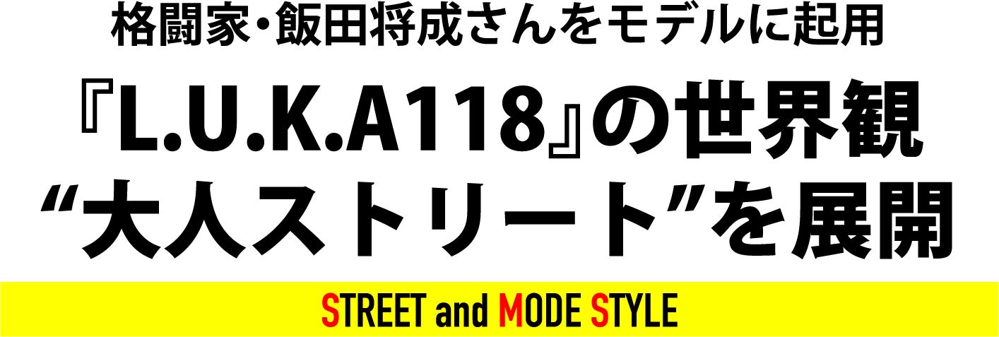 高いファッション性を追求した『L.U.K.A118』のイメージは、セクシーでありながらエレガントな一面を併せ持つ“大人ストリート”。そのイメージモデルには、『BREAKING DOWN』のスター選手で、YouTubeでも話題の格闘家・飯田将成さんを起用しました。タフなボディと甘いマスクで圧倒的な人気を誇る飯田さんが、さまざまなシーンで『L.U.K.A118』の魅力を最大限に引き出します。