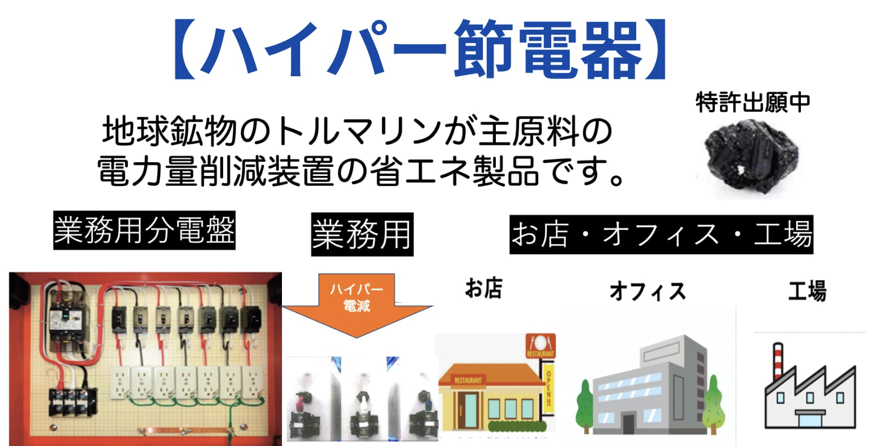 ハイパー節電器とは、地球鉱石トルマリンが主原料の電力量削減装置の省エネ製品。電子機器ではないので電流は流れません。電子パーツも無いので安心、安全、長寿命で簡単に設置できます。