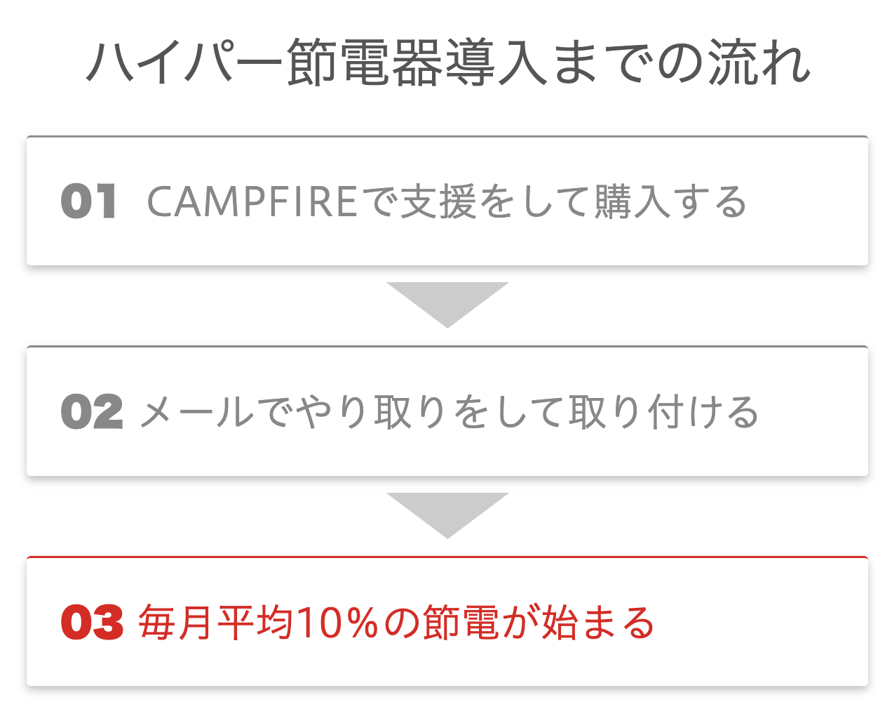 そんな中、ハイパー節電器という発明を大学の友人から話をいただき、これは今すぐ日本中の電気料金高騰で悩む方に届けなければいけないという使命を感じ、このCAMPFIREクラウドファンディングを皮切りに広めていくことを決意しました。