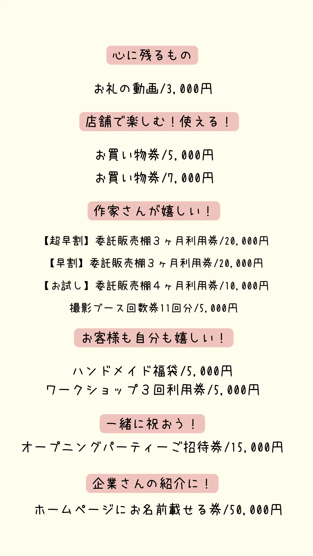 商品券やワークショップ利用券などをご用意しました。