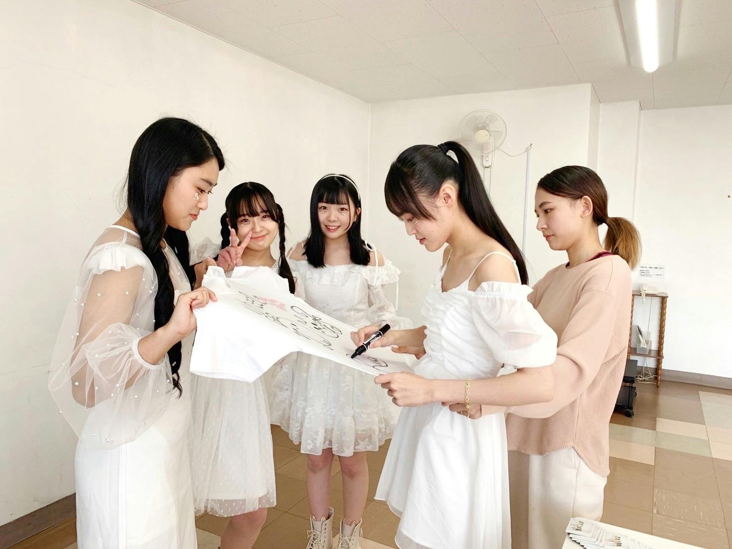 ⒎サイン入りTシャツ メンバー直筆で隅々まで宛名・サイン・メッセージを書きます!また、メンバー1人ずつがTシャツを持ったチェキを同封いたします!