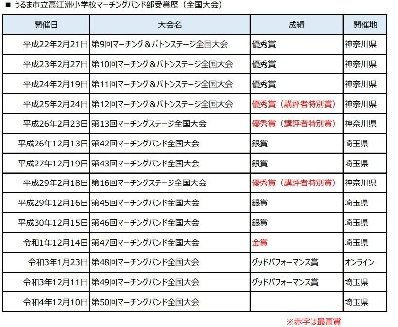 この度、令和4年11月6日(日)に開催された沖縄大会で金賞を受賞し、12月10日(土)にさいたまスーパーアリーナで開催される第50回マーチングバンド全国大会へ出場することが決まりました。