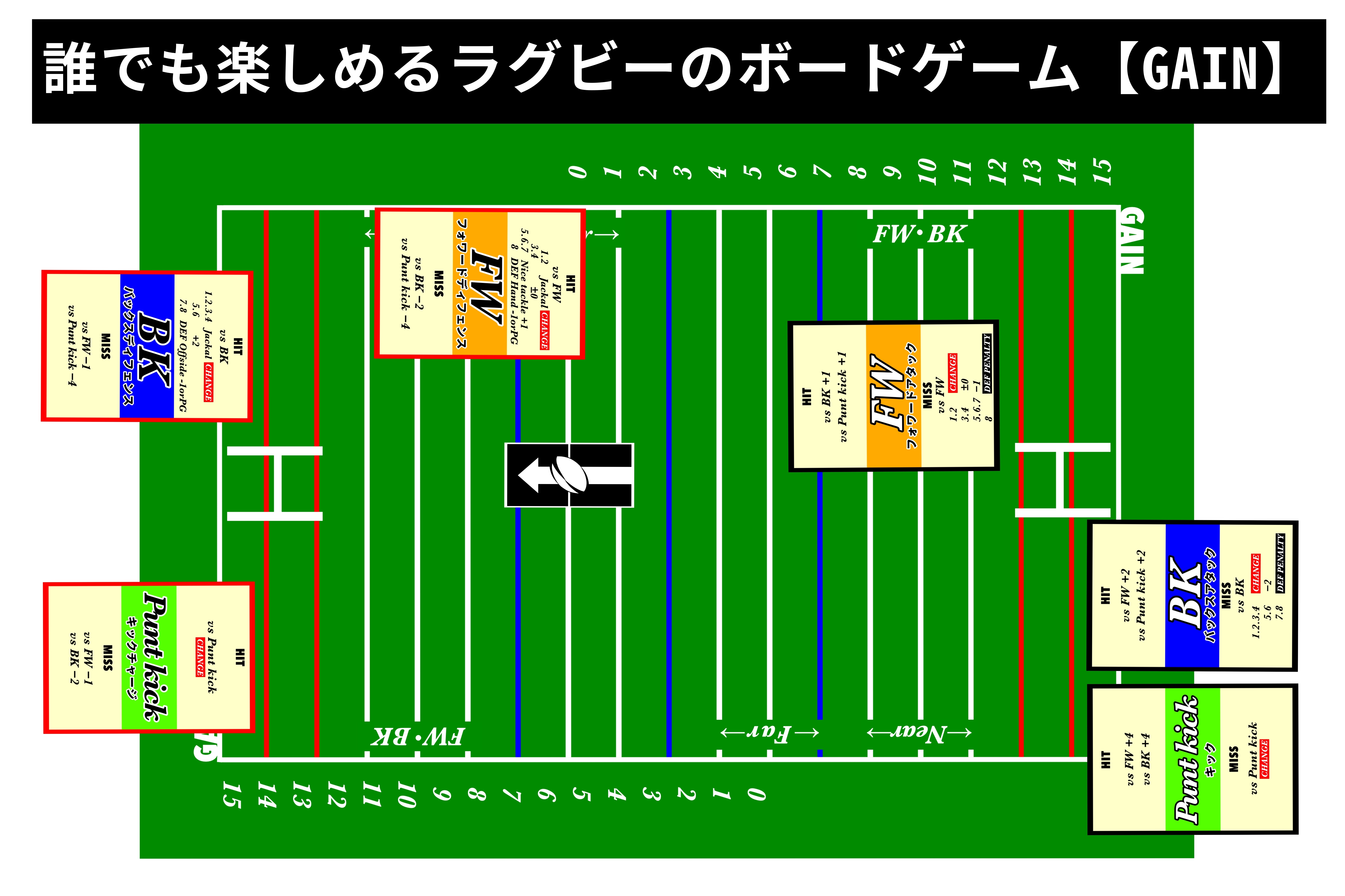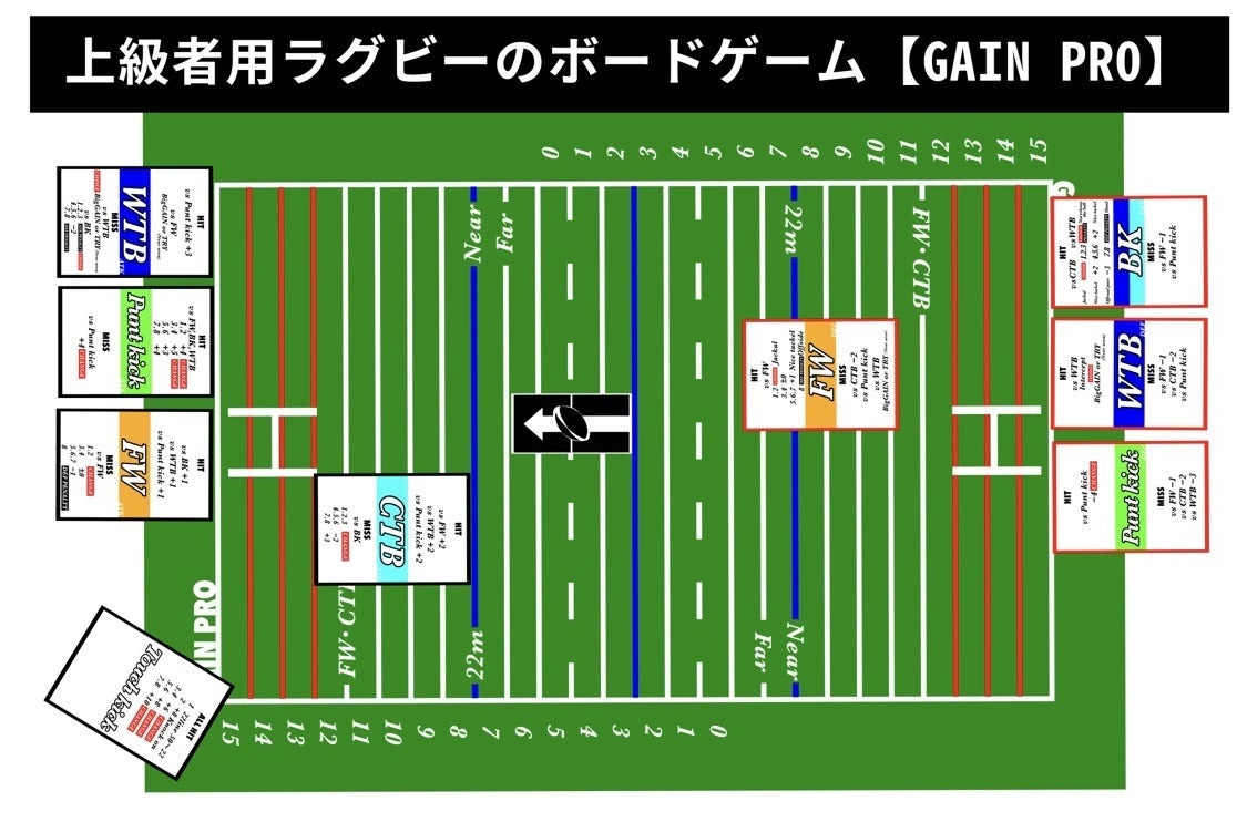 「GAIN」にラグビールールや戦術の要素を取り入れ、より本物のラグビーに近い臨場感を味わえる上級者用ボードゲーム