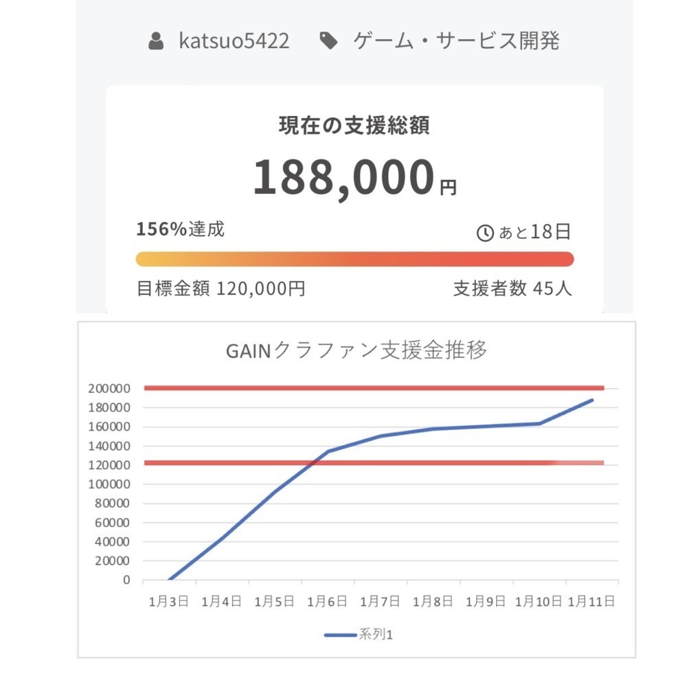 第一の目標に達成して数日支援金の上昇は落ち着きましたこれはクラウドファンディングではよくある事で、開始直後と終了間近が伸びるのが普通なんですそんな停滞期的な流れに入った、、のかもしれませんが、、これまでゲームの先行販売された数が60個近くになりました初代GAINが一年半で100個くらい売れた事を考えると相当凄い数です本当にありがたい引き続きよろしくお願いします♬