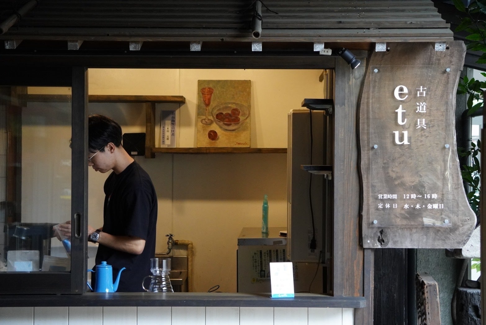 古道具屋「etu」さんの入り口にある小さなコーヒースタンドです。