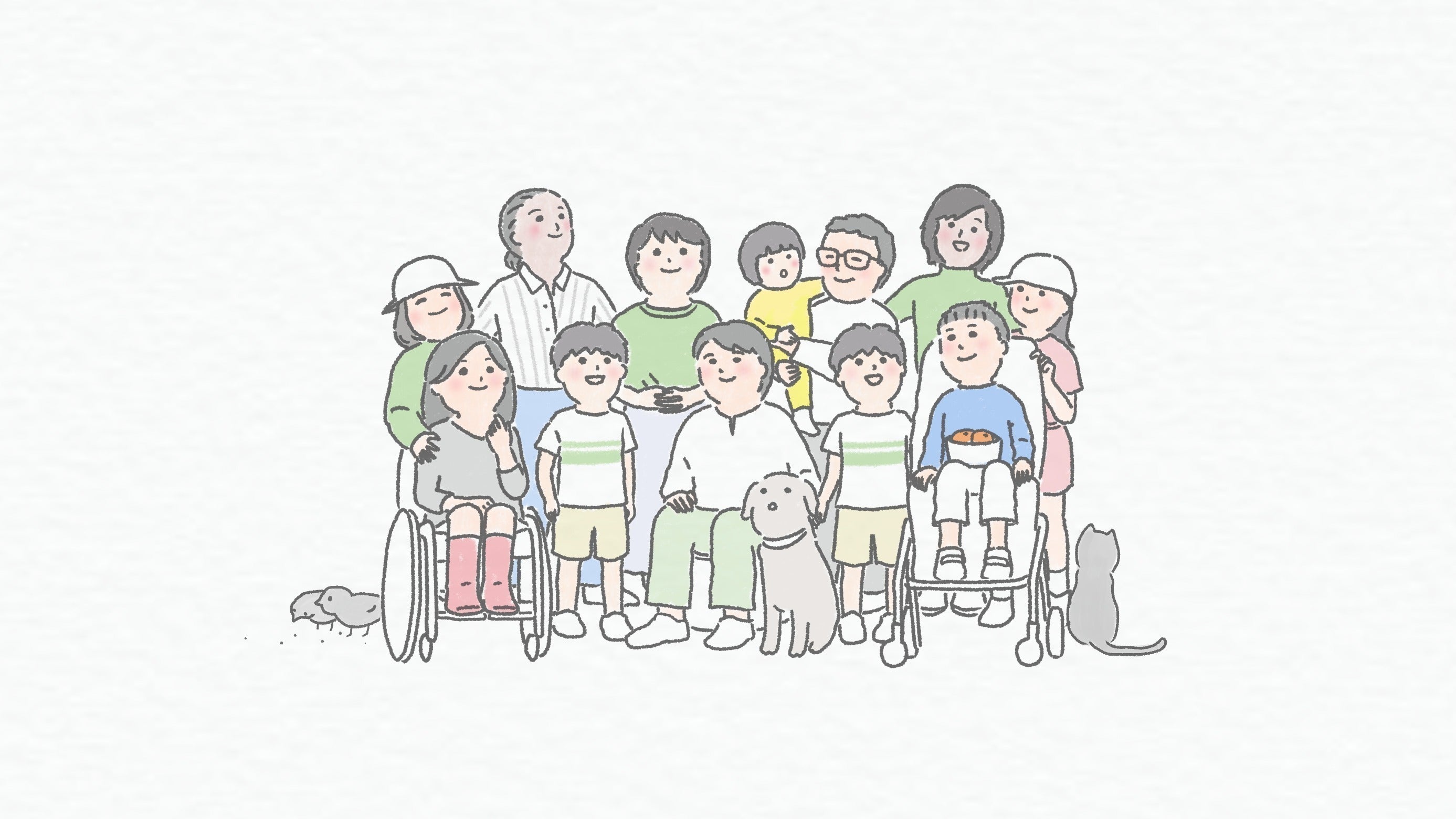 このような思いで、プロジェクトリーダーの朝霧 裕が発起人となって、長年音楽活動を共にしてきたミュージシャンや、SNSなどを通じて交流のあった障害当事者の仲間、コロナ禍をきっかけにして、SNSで出会ったイラストレーターらが集い、2021年の秋にクラウドファンディング「多様性のある社会を可視化するリリックムービーつくりたい!」(詳細はこちら)を実施しました。