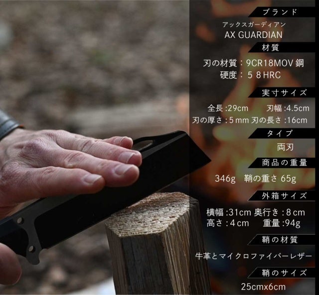 薪割り初心者の方も、軽量コンパクトで使いやすい「アックスガーディアン」で、鉈やナイフ周りのお悩みを解決しませんか?