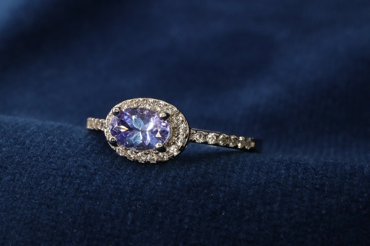 紫がかった青色が美しいタンザナイトは、12月の誕生石としても知られています。夕刻迫る空のような神秘的な青を輝かせたタンザナイト。比較的新しい石で、タンザニアで発見され、ティファニー社が産地にちなんで命名しました。見る角度や光の加減によって青色から紫色に変化します。