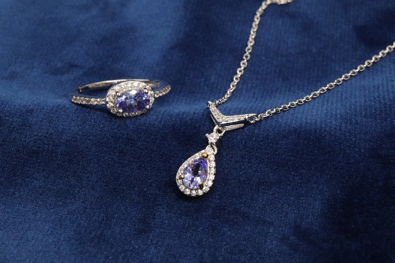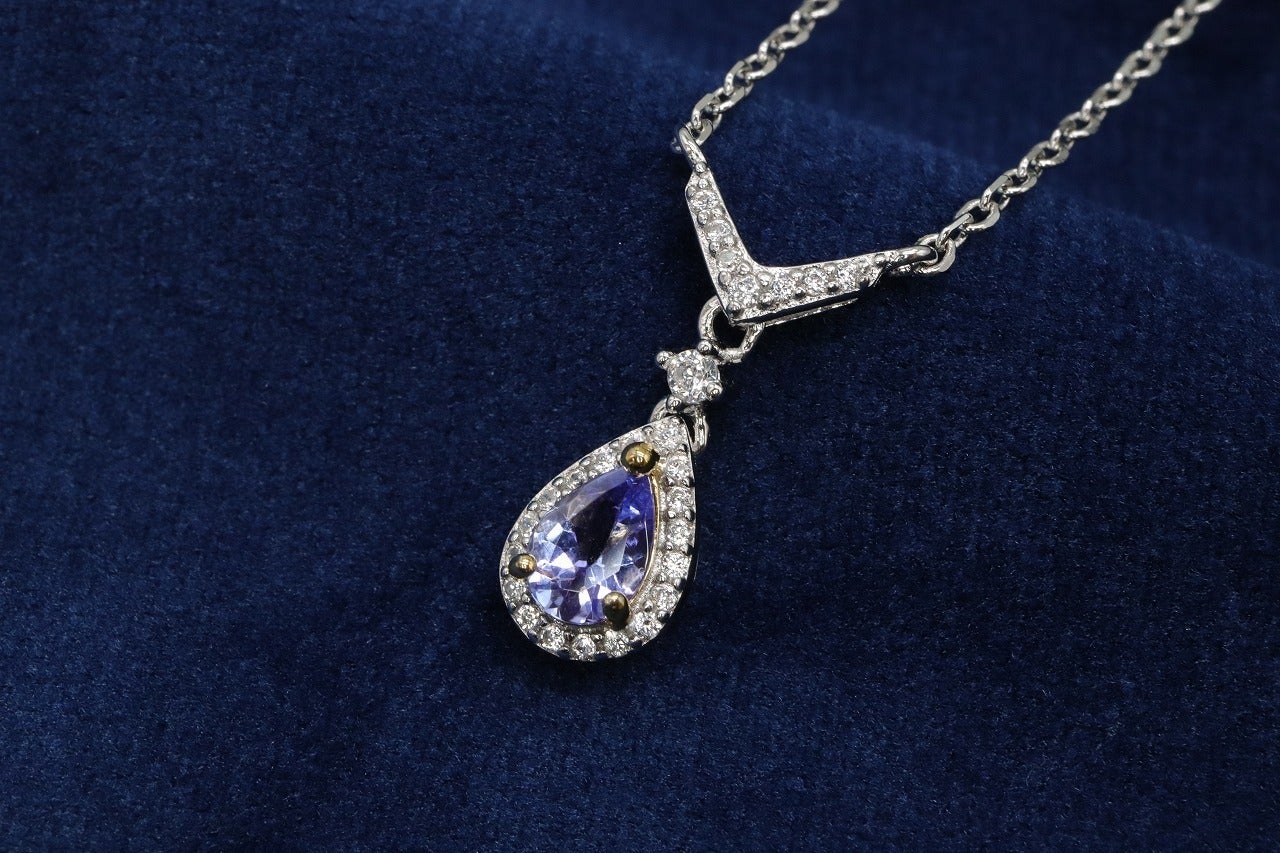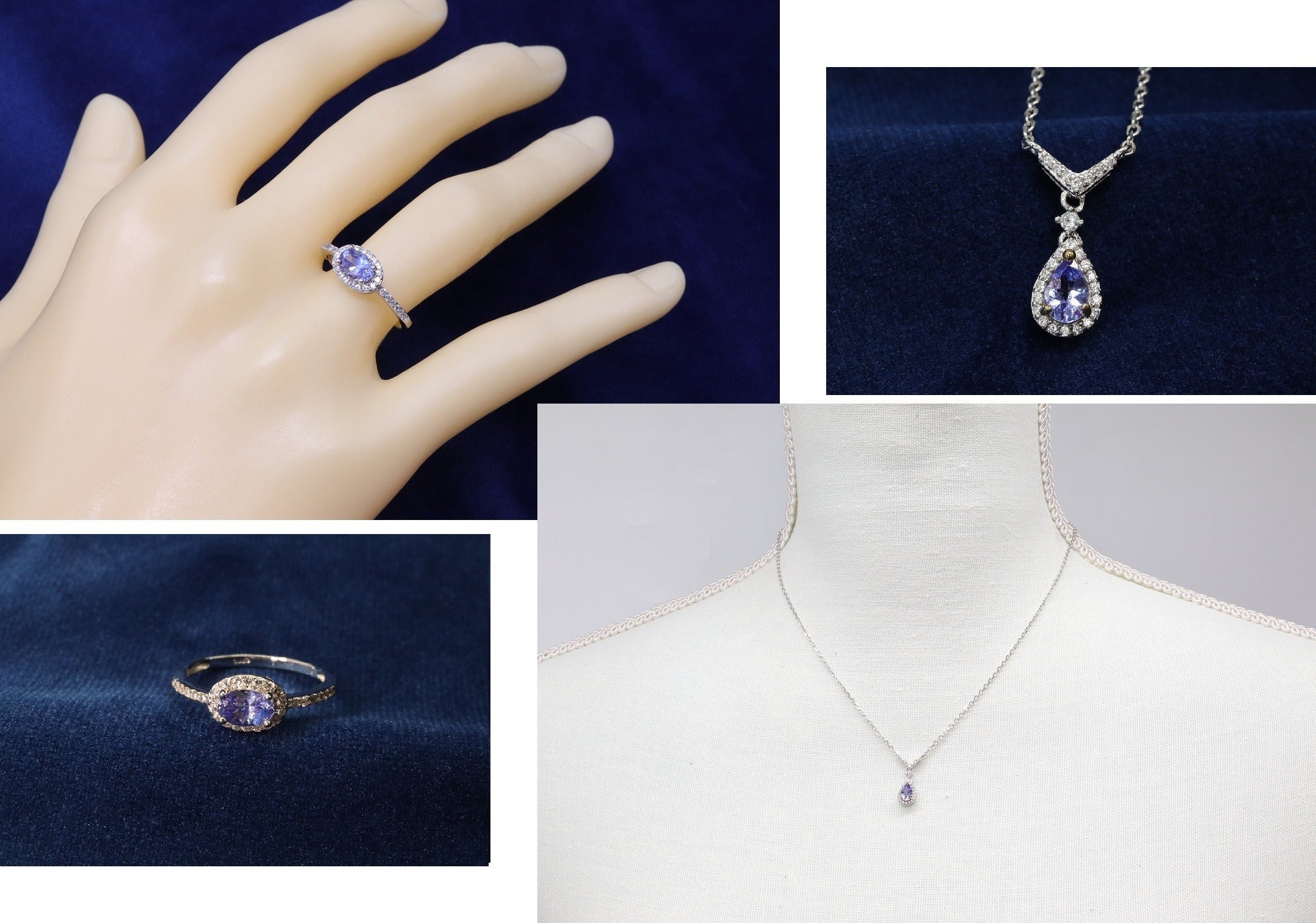 青や紫がまじりあい、美しい色彩を放つタンザナイト。それを煌めくキュービックジルコニアが取り囲み、タンザナイトの魅力である「夕刻のタンザニアの空」の色彩をよりいっそう際立たせます。2022年の締めくくりに「ジュエリー・かわさき」が提供させていただく、渾身のジュエリーです。