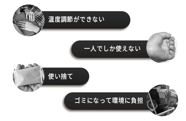 冬に使い捨てカイロをお使いになる方は多いと思いますが、化学反応で発熱する使い捨てカイロは温度調節ができず、1回使用したら捨てなければなりません。
