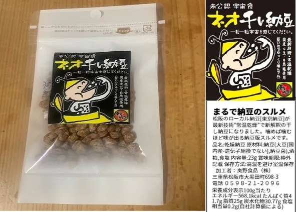 ※第一弾でご支援くださりました皆様が、第二弾に再度ご支援をお申込み戴きました場合、リターンに「未公認宇宙食 ネオ干し納豆1袋」を御礼といたしまして同封させていただきます。