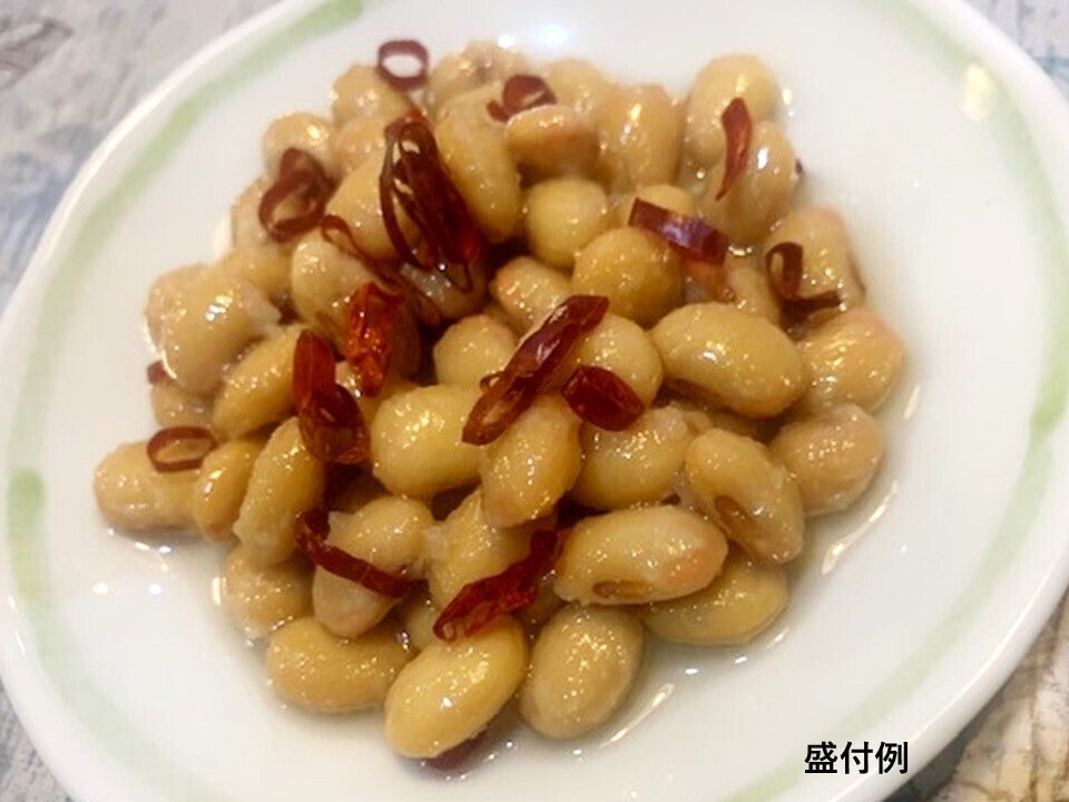 「ペペロンチーノ蒸し大豆」(納豆ではなく味付け豆です)