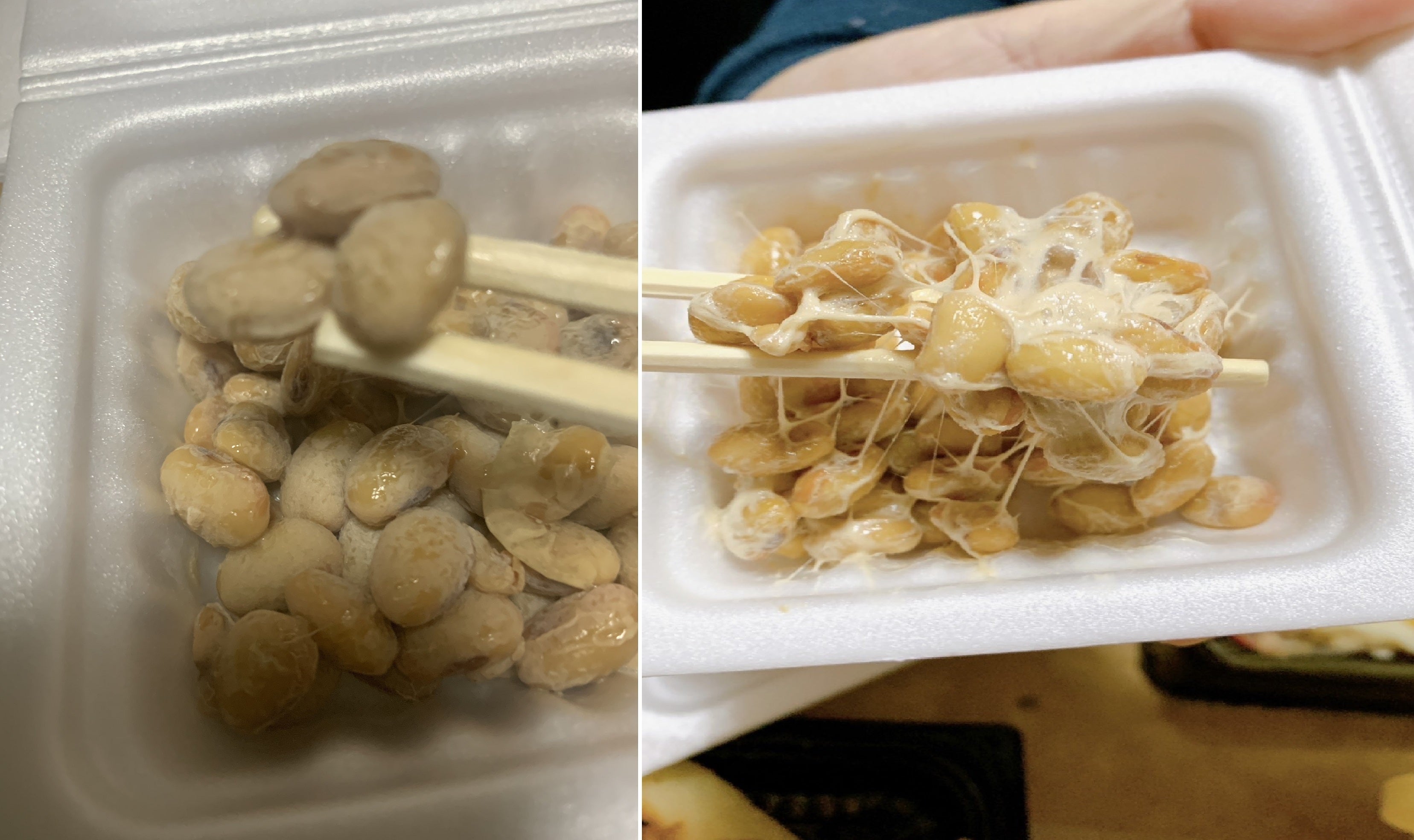 納豆を作る工程で豆は重さの約半分、50%もの水を吸収します。