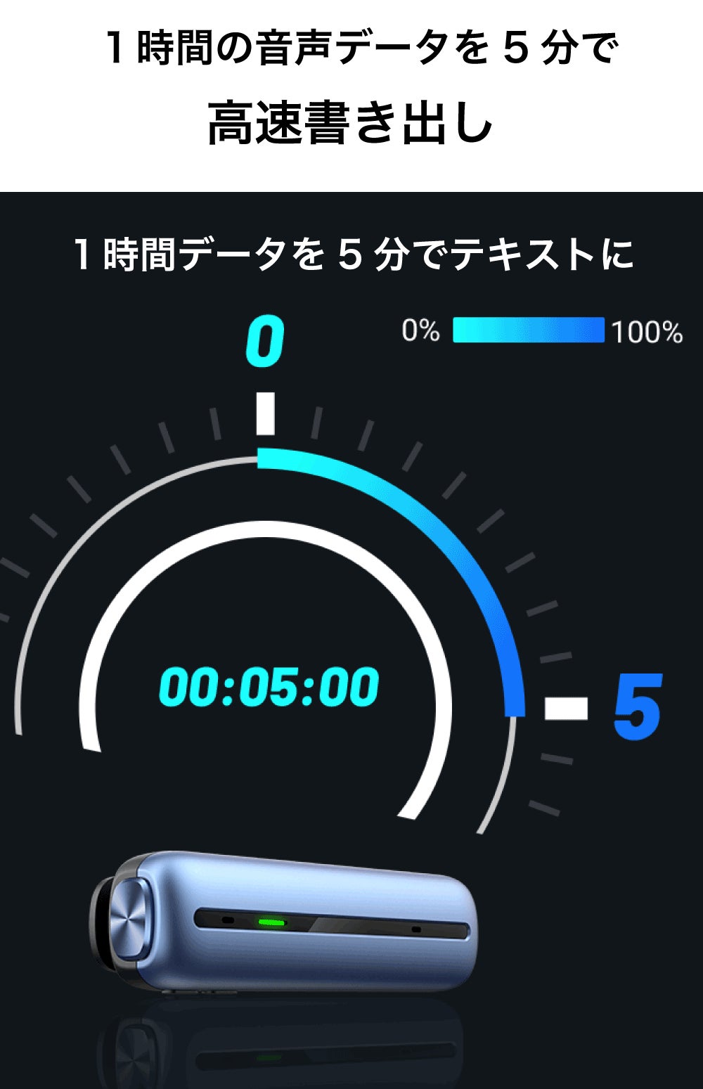 1時間の録音データでも5分で文字起こしする
