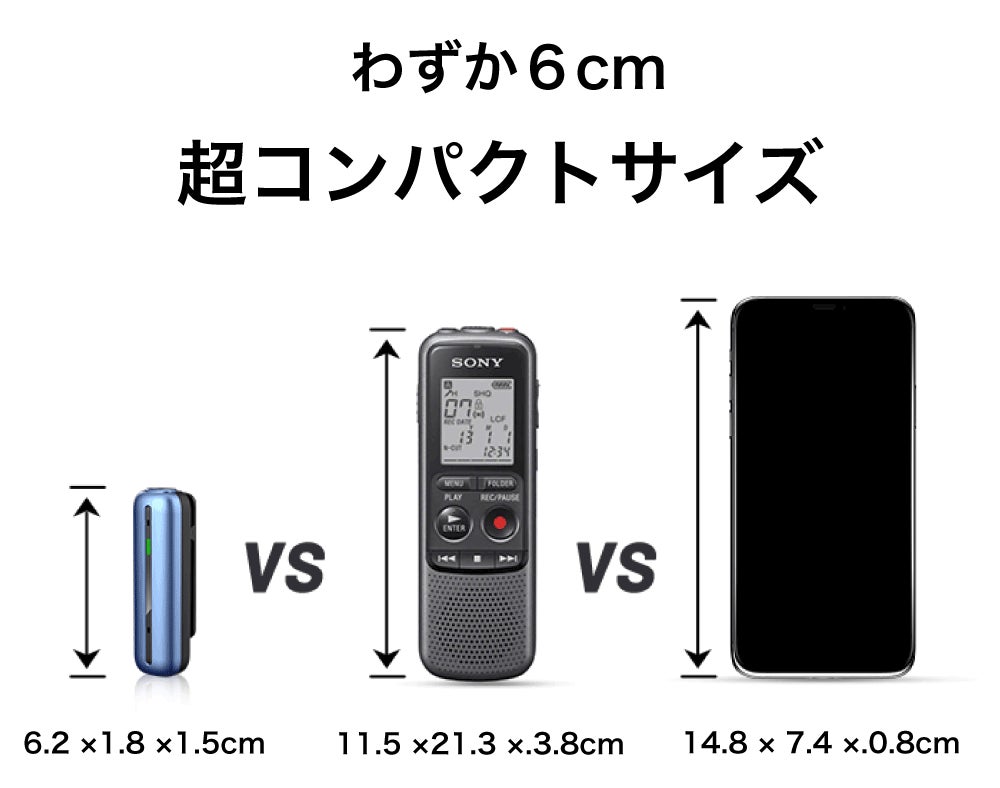 幅6cm、薄さ約2cmのポケットにも入る超コンパクトサイズを実現。