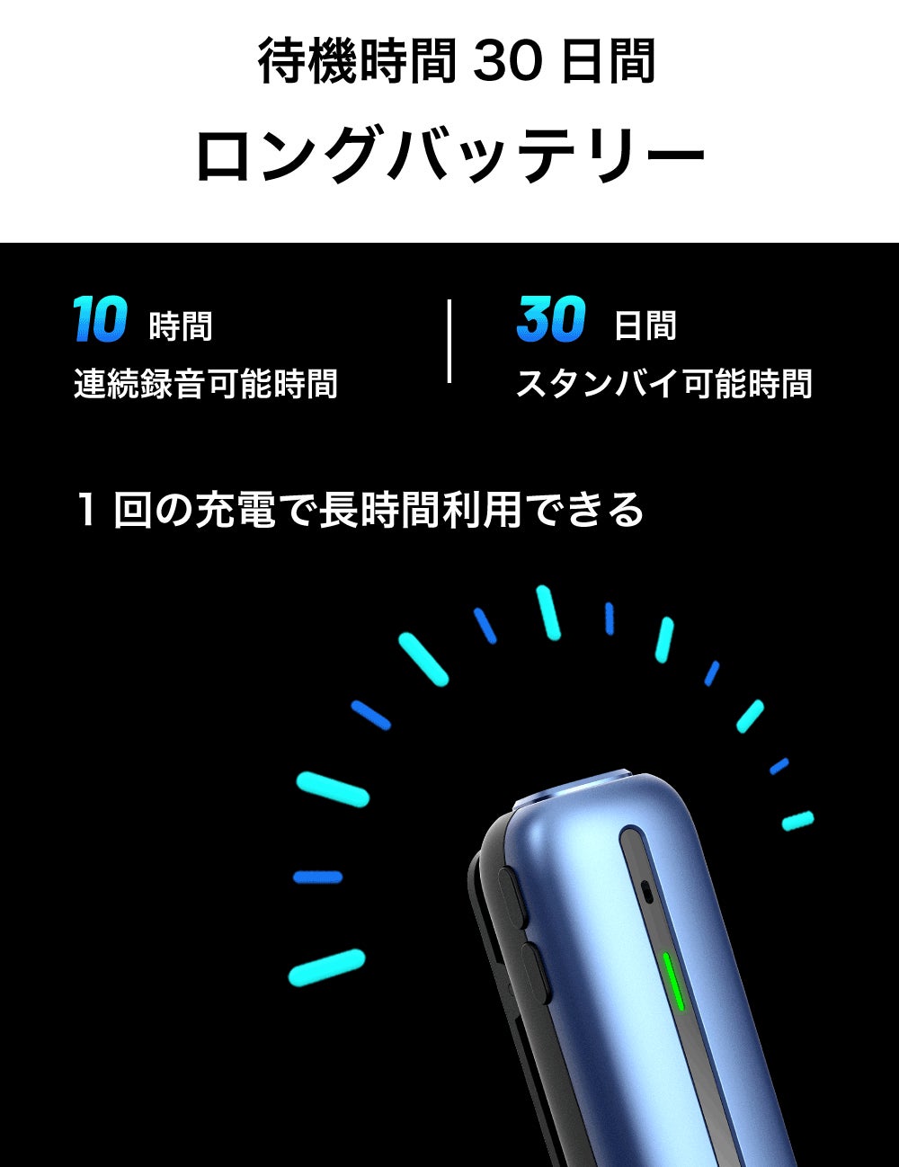 連続利用時間は10時間連続録音が可能