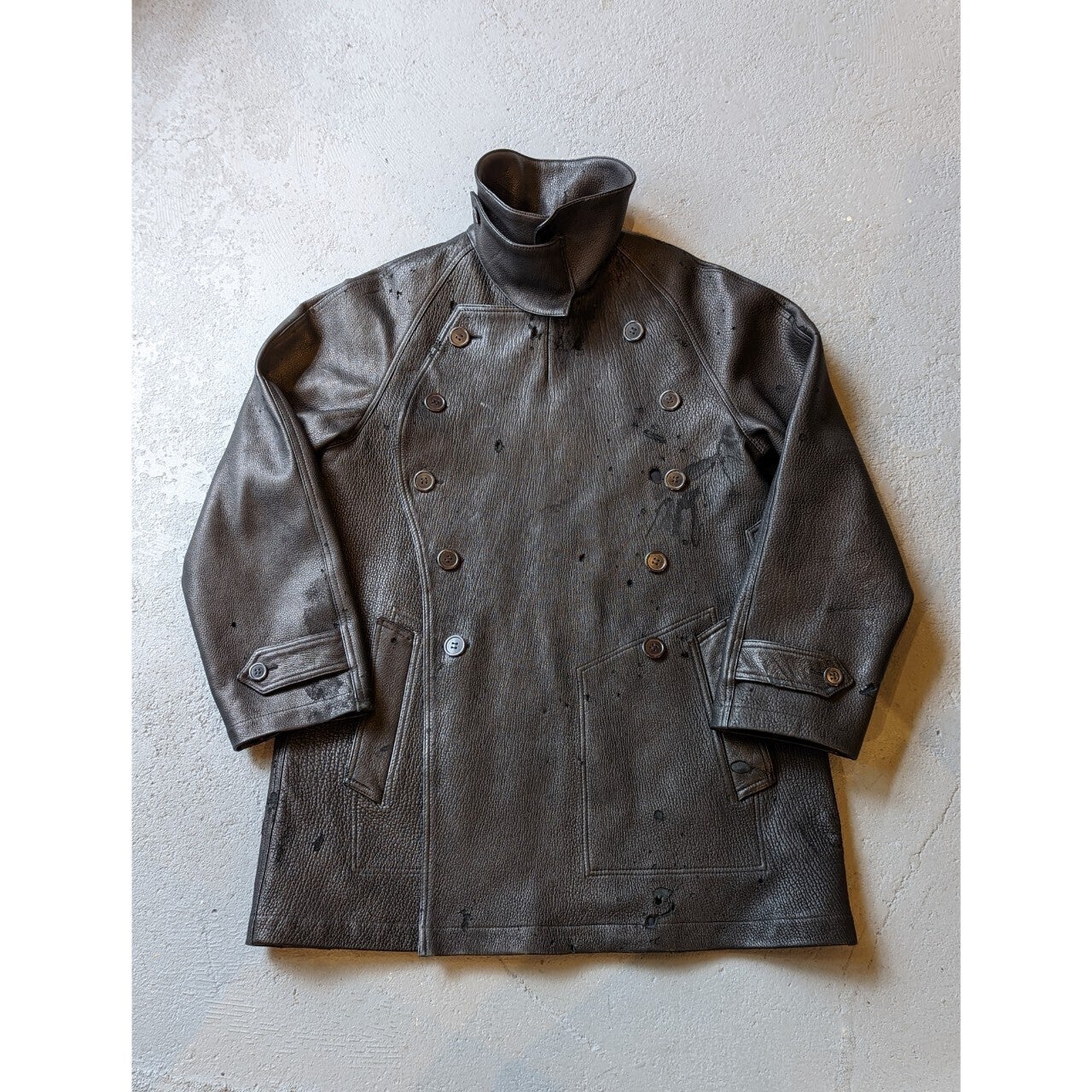 ピーコートと同じような合わせで風の進入を防ぎつつ独特な曲線のカッティングが特徴的なジャケットです。