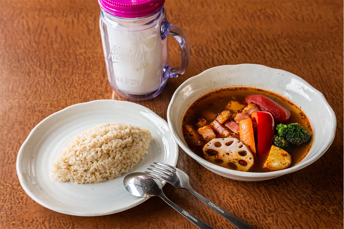 スープは、オリジナルスープとココナツスープ、2種類からご提供いたします。父であるマスターの作り上げた、創業から変わらぬ味のオリジナルスープ、私の自信作ココナツスープ、親子二代に渡る伝統と革新の味を是非ともお楽しみいただきたく思います。