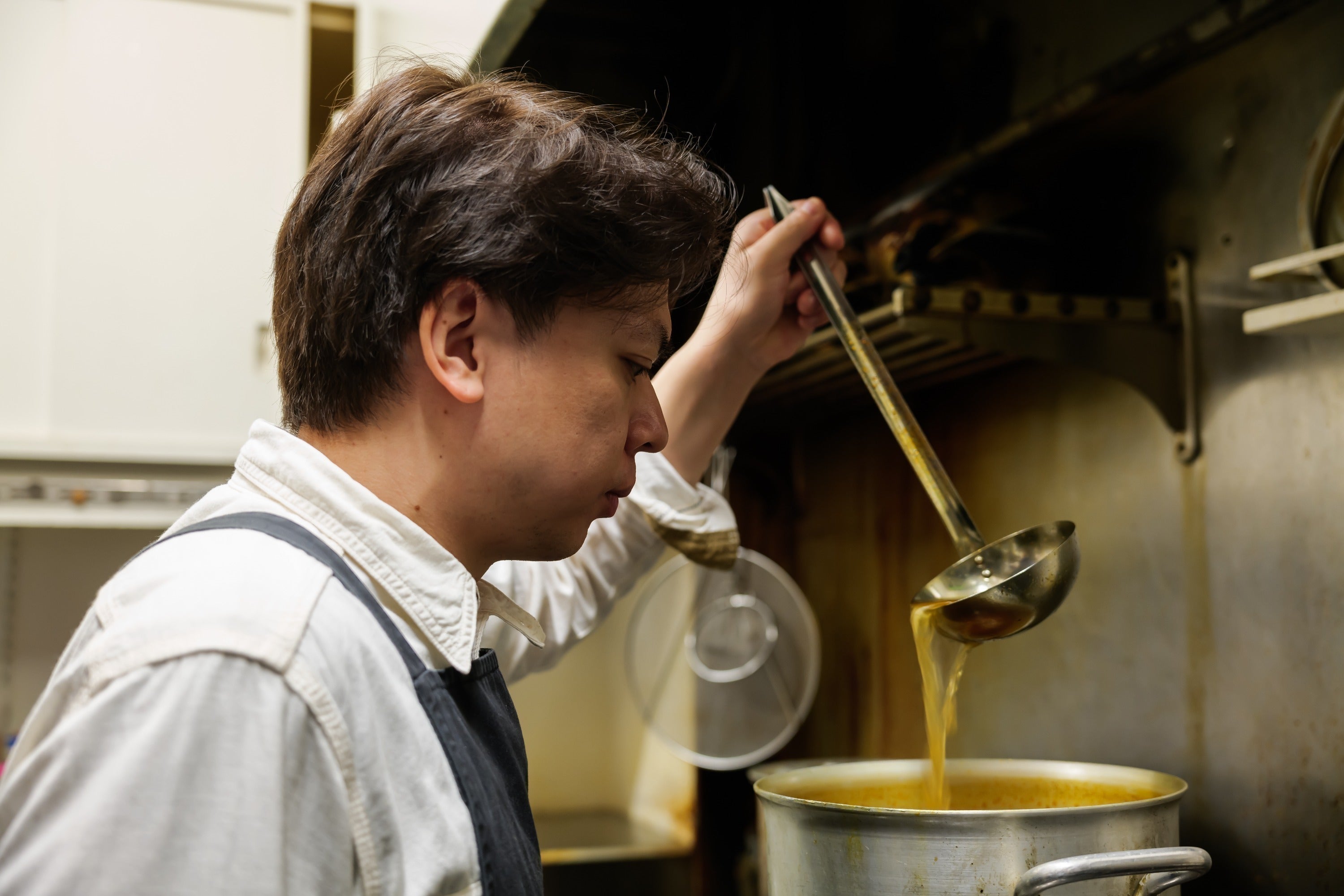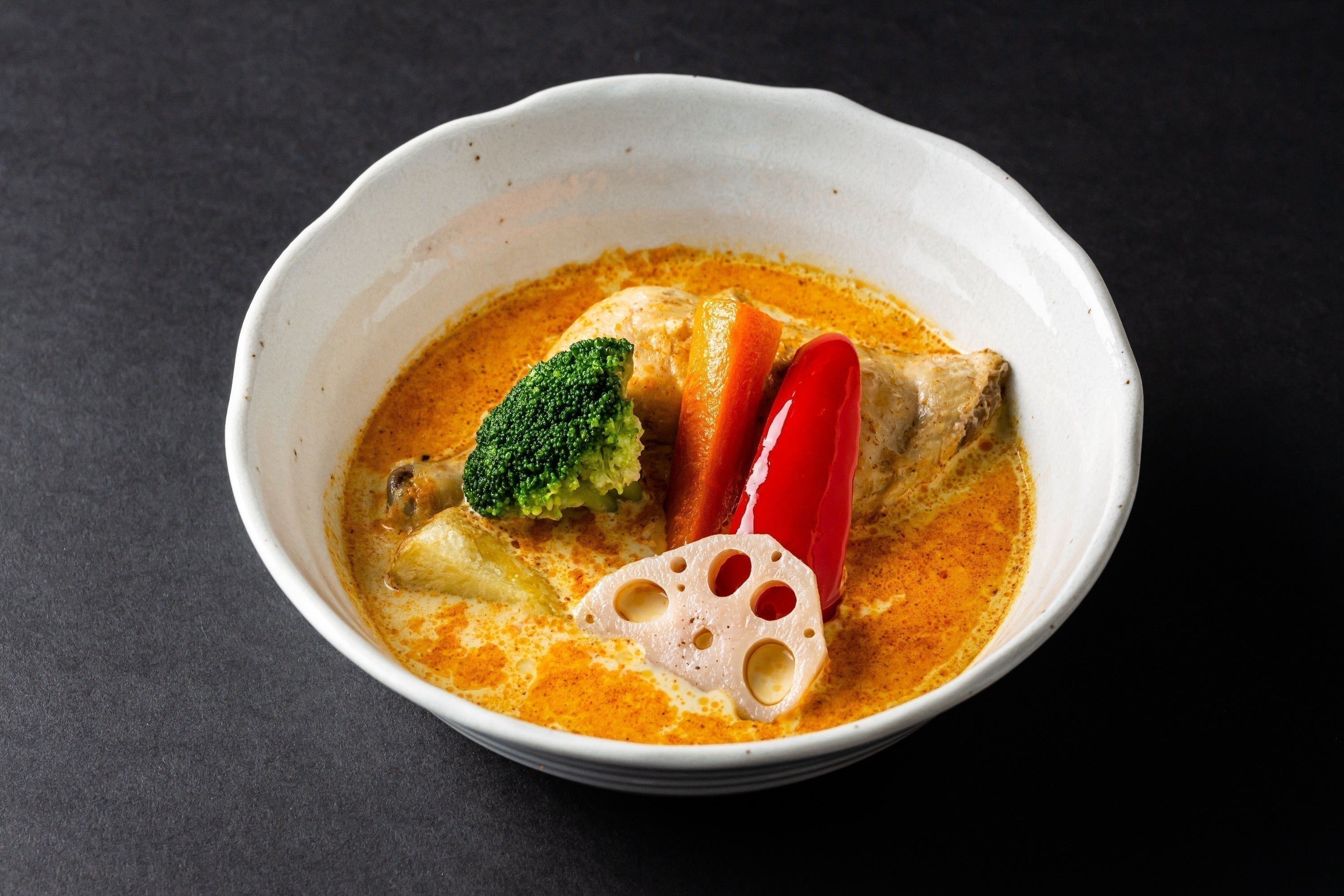 スープは、オリジナルスープとココナツスープ、2種類からご提供いたします。父であるマスターの作り上げた、創業から変わらぬ味のオリジナルスープ、私の自信作ココナツスープ、親子二代に渡る伝統と革新の味を是非ともお楽しみいただきたく思います。