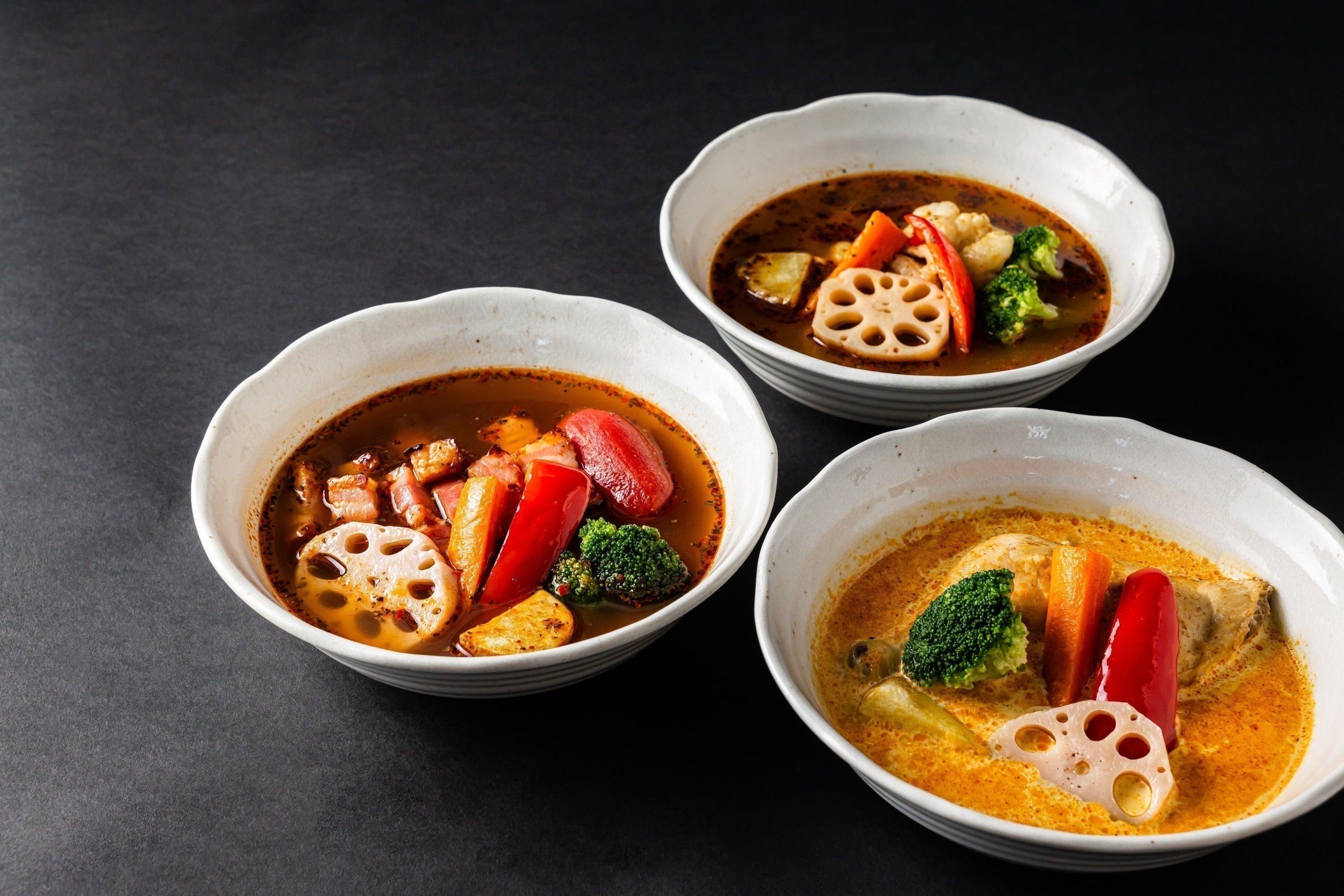 この度は2種類のスープと4種類のメイン具材のカレーをご提供いたします。