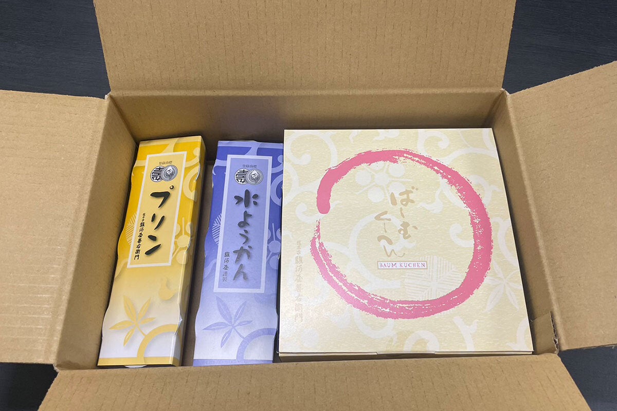 ばーむくーへん・プリン・水ようかん、それぞれ個別に包装いたします。