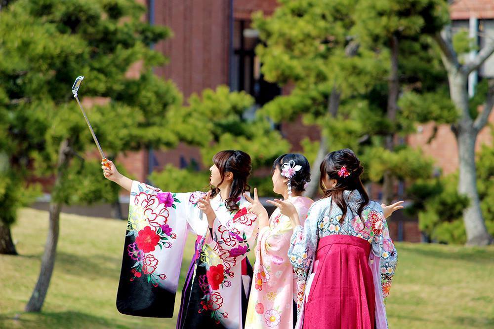本学は街中から少し遠いですが、だからこそキャンパスは緑に囲まれています。昼休みはたくさんの学生が、青々とした芝生の上でお弁当を楽しんでいます。春の桜の時期など、中庭の風景は絵画のようにキレイです。そして何より、水の森公園と丸田沢に隣接しており、その豊かな自然に触れることができます。