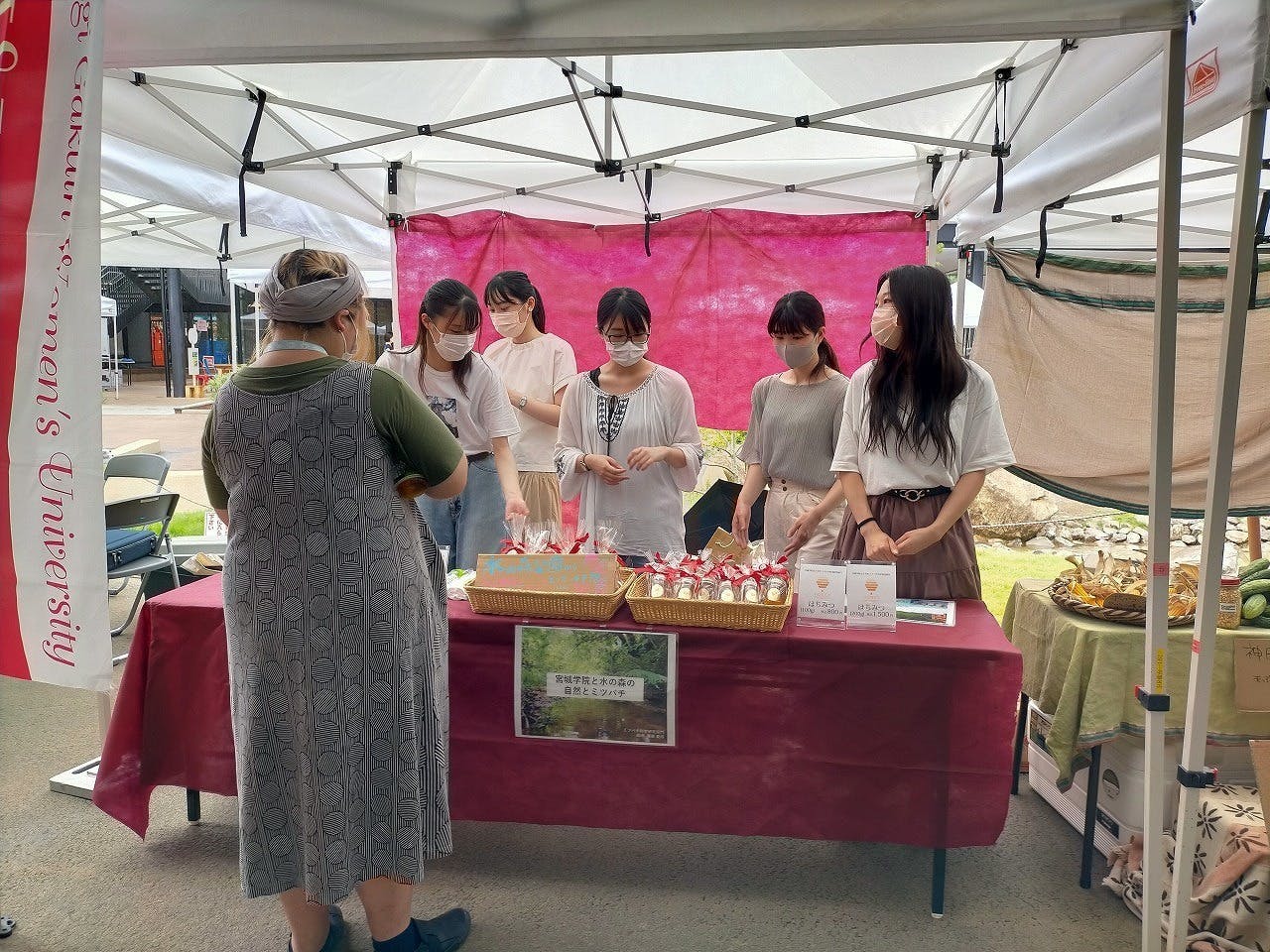はちみつの販売会では、多くの人が足を止めて興味を持ってくれます。何代も前の卒業生の方々がはちみつを買って応援してくださることもあります。自分達が世話をしているミツバチ達が作ってくれた美味しいはちみつが売れて、味を褒めていただく度に、とても嬉しい気持ちになります!