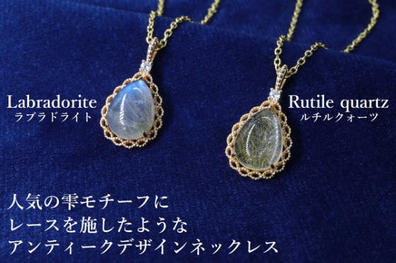 雫モチーフ×アンティークデザイン★ラブラドライト&ルチルクォーツネックレス
