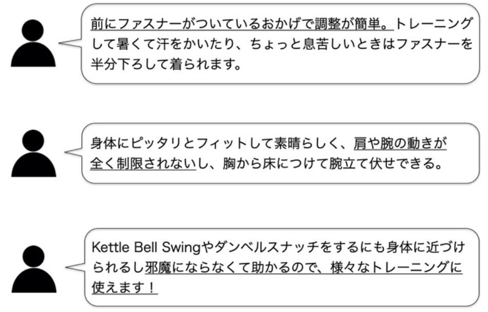 A: 腕立て伏せやスクワットなど自重で行うトレーニングに適してます。また、肩周りや脇周りの自由度が非常に高いデザインのため、激しい動きを伴うエクササイズにもご使用いただけます。使い方は様々です。