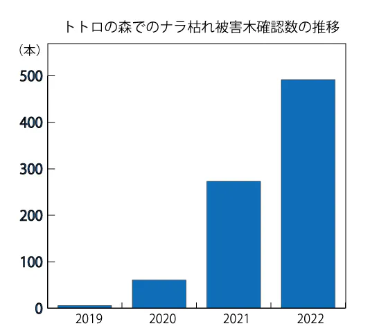 しかし今、トトロの森で小さな虫が媒介する樹木の伝染病、ナラ枯れの被害が拡がっています。