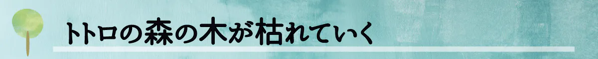 何が理由だとしても、今はトトロの森で起きているこの緊急事態に対応しなくてはならない。すでに貴重となっている豊かな森を、豊かなまま未来に残したい。