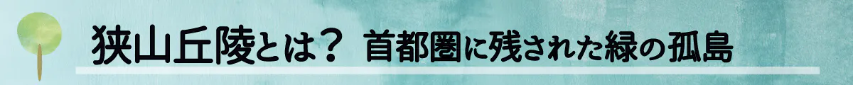 狭山丘陵は映画「となりのトトロ」の舞台のモデルの一つになったといわれており、ゆるやかな丘と谷が織りなす里山の美しい景色のなかに多くの動植物が息づいています。