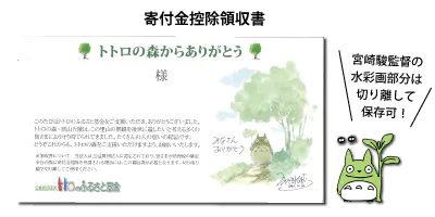ご寄付はナショナル・トラストの手法を用いて、狭山丘陵における自然環境の保護及び整備の費用に充てさせていただくための特定資産「トトロのふるさと基金」への指定寄付金とさせていただきます。