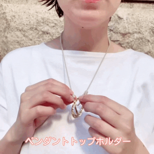 両端の穴に付属品の留め具をそれぞれつけ、留め具を合わせて輪にしていていただければペンダントトップのホルダーとして使用できます。お気に入りのペンダントトップにつけておしゃれに使えます。