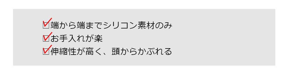 全て表面はシリコン素材ですので多少伸縮性があり、簡単に頭からかぶって着脱することが可能。