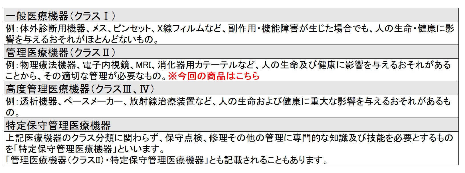 【管理医療機器の分類表】