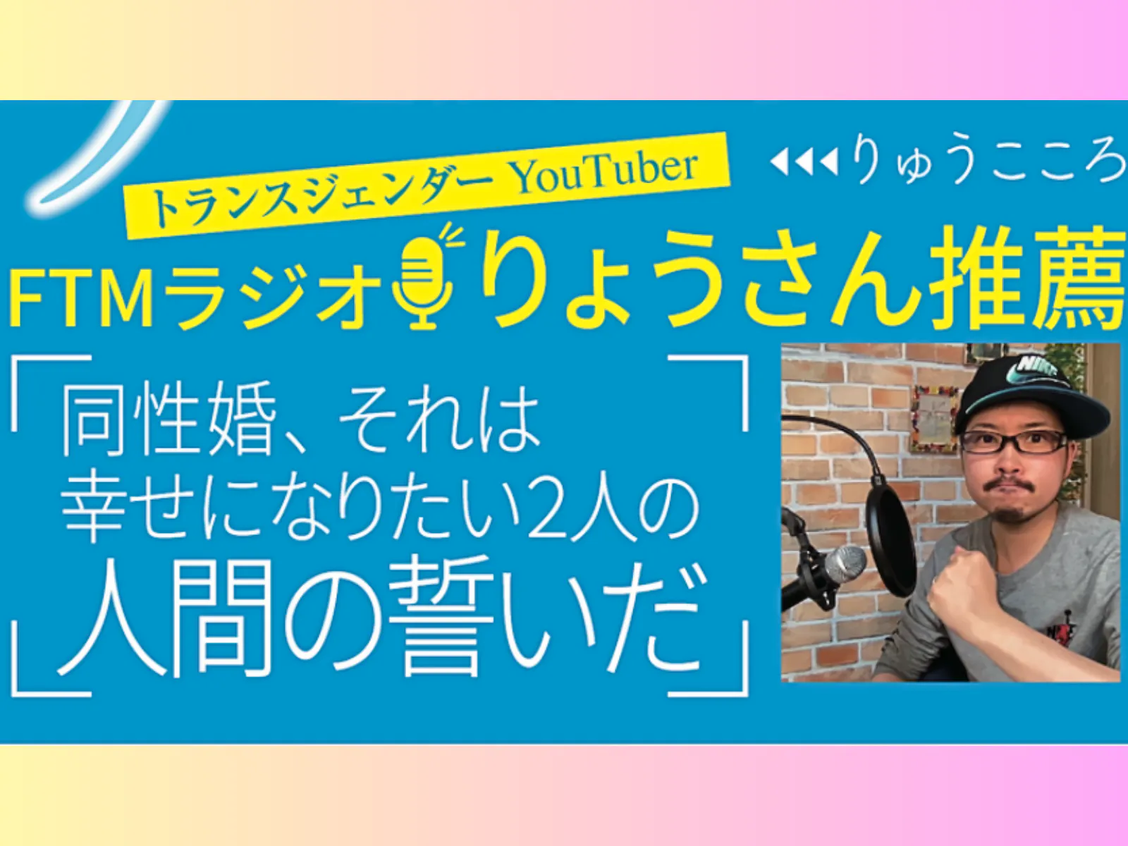 YouTubeでトランスジェンダーの方々を応援していらっしゃる『FTMラジオ りょう』さんに応援、ご協力いただきました(本の帯にステキなメッセージも頂戴しました)