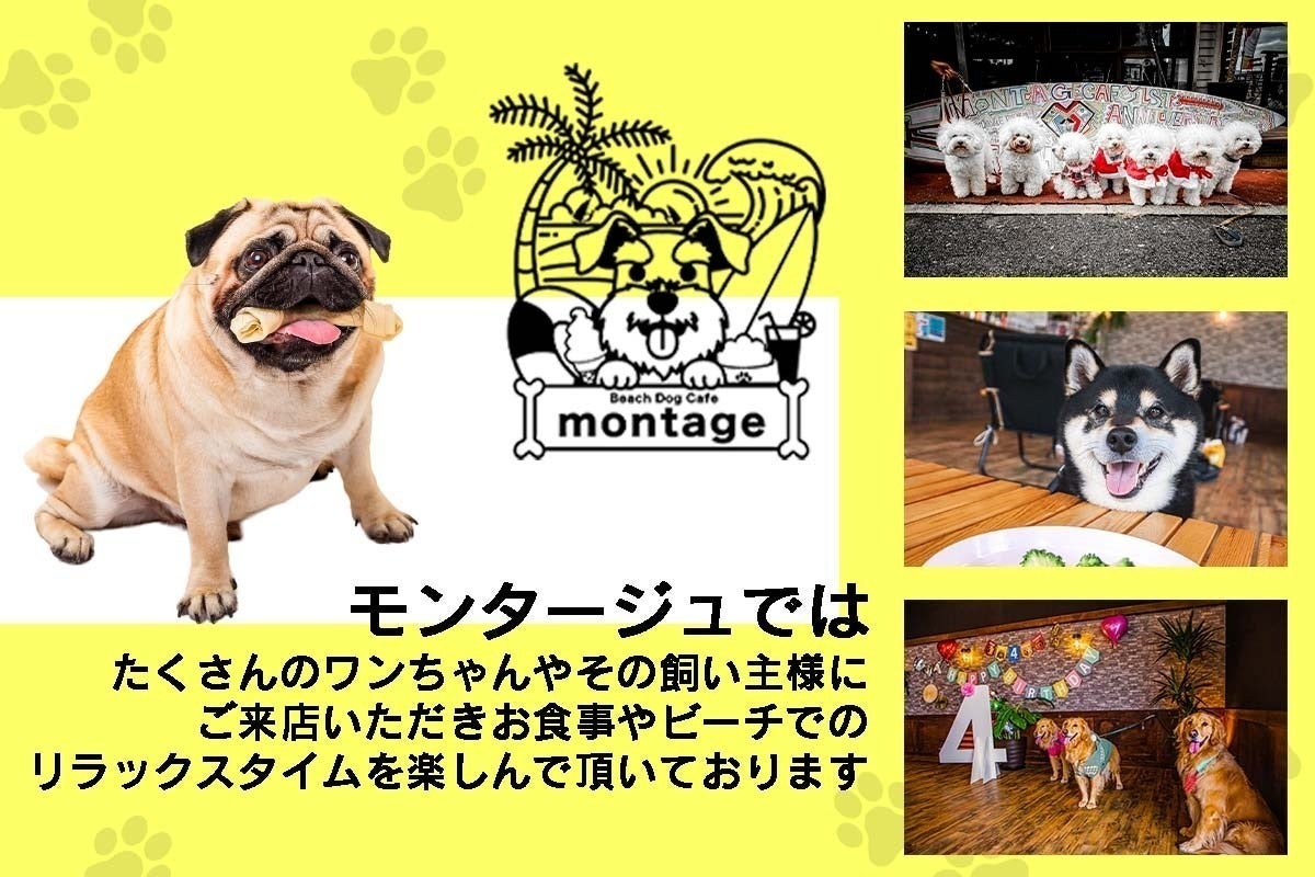 モンタージュではたくさんのワンちゃんやその飼い主様にご来店いただきお食事やビーチでのリラックスタイムを楽しんで頂いております。