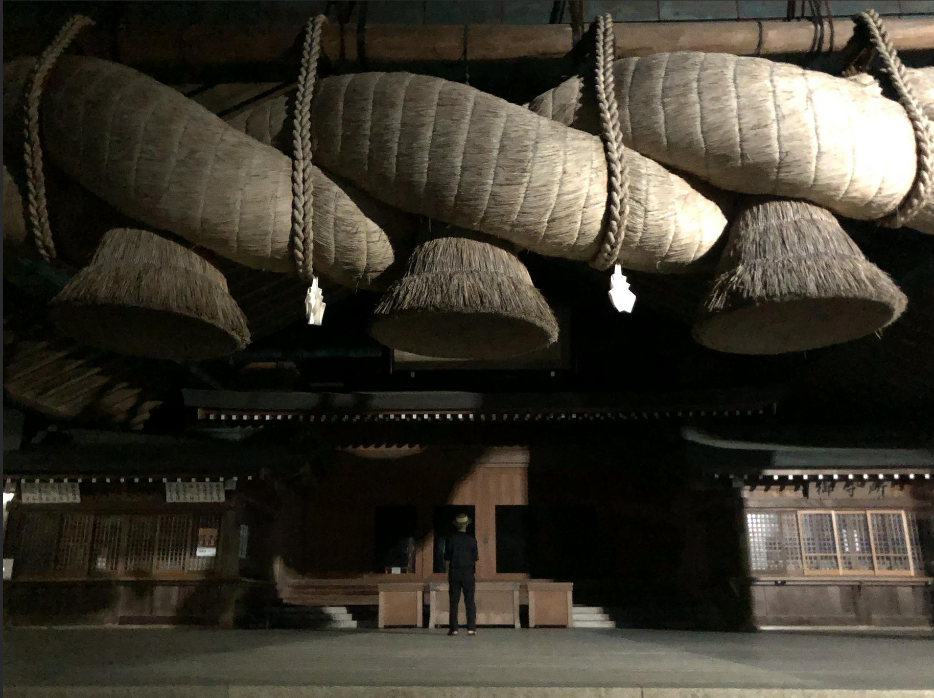 出雲大社神楽殿の大しめ縄、日本最大級で全長13.6メートル、重量5.2トン。