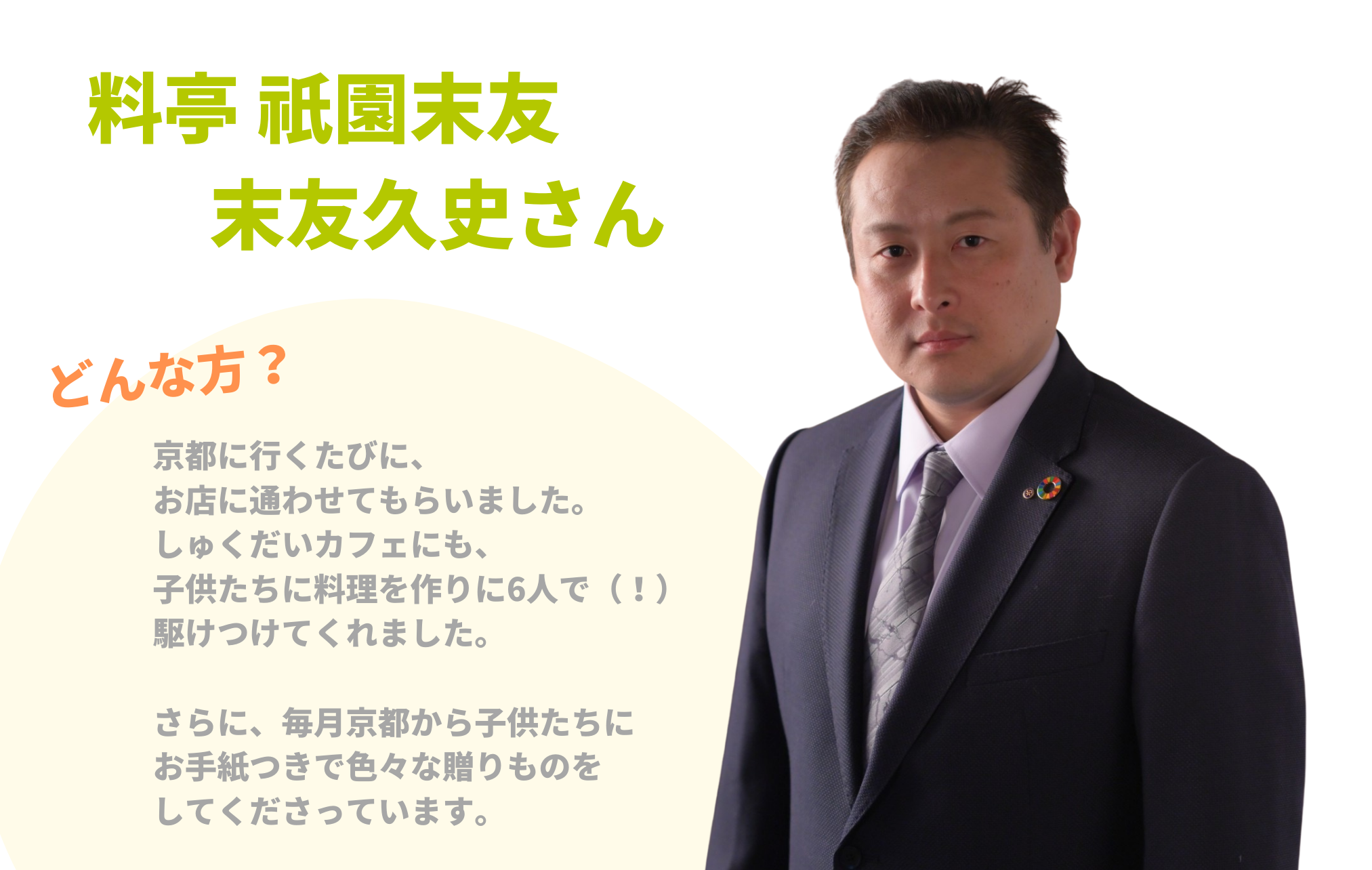 初めまして。私は京都生まれ京都育ちで、京料理屋を営む末友久史と申します。