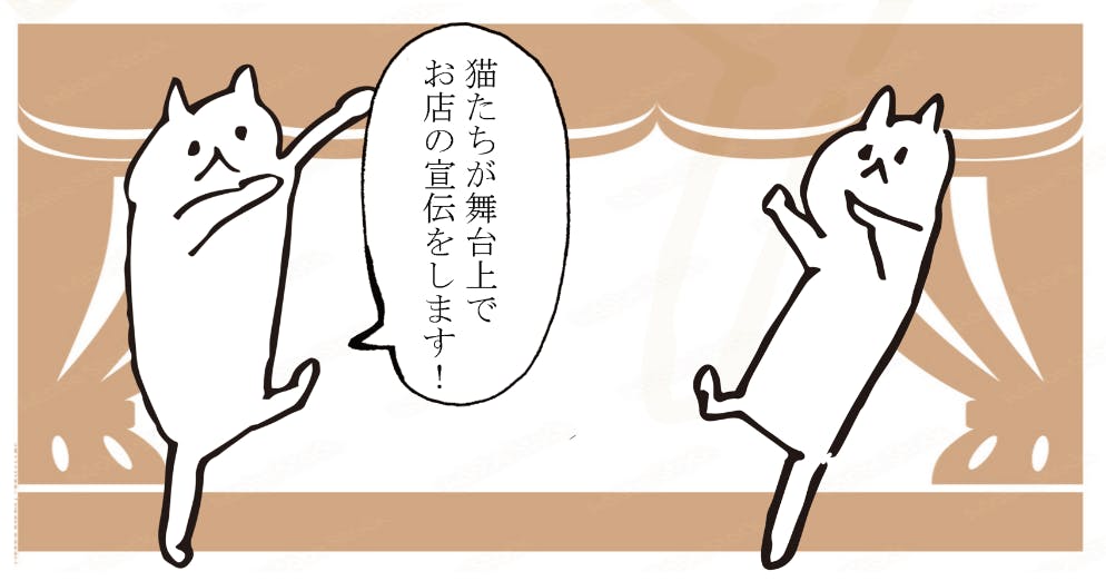 協賛企業様、商店様を会場ロビー、公式サイトに掲載しSNSにて企業様の製品やHPなどのPRをいたします。また、カーテンコール後のミニショーにて、企業様・商店様のお名前・製品名をお呼びし、猫に扮したキャストが舞台上でCMコーナーとして宣伝します。