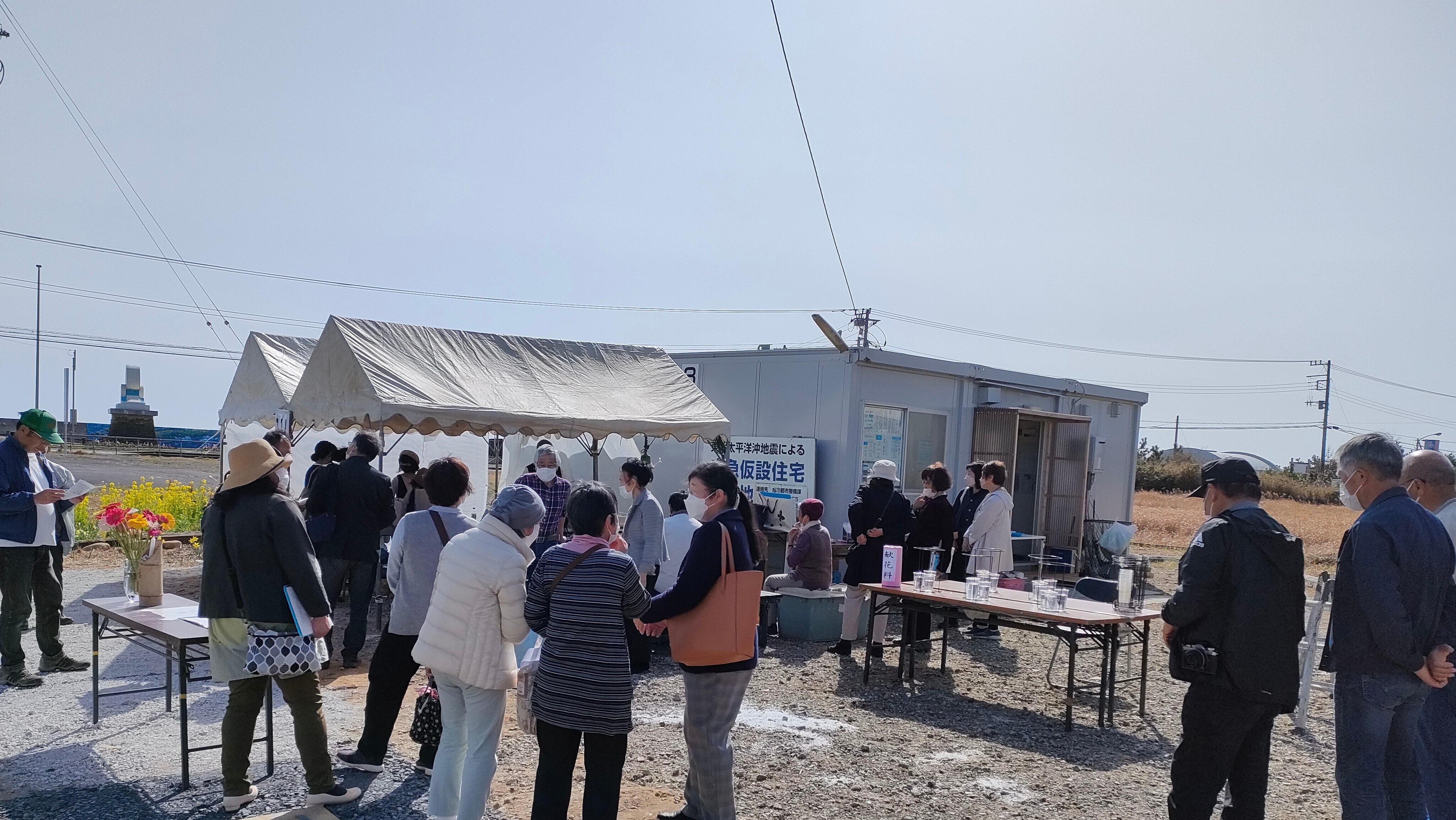 あさひの芸術祭2023展示スポットの一つ「仮設住宅(3・11震災遺構)」にて、『いいおか津波語り継ぐ集い』が開かれました。「仮設住宅」は、津波で家屋被害を受けた多くの方々が一時的に生活していました。その後コンクリート三階建ての「復興住宅」が作られ、仮設住宅は全て撤去することになりましたが、「遺構として一棟だけでも残した方がいい」という人々の願いで、現在の場所に移築したものです。仮設住宅内に展示されたモンゴルマン油絵の「楽奏神仏」シリーズの無音の鎮魂曲(レクイエム)と共に、ここで過ごした人々の生活を感じてみてください。 また昨日は旭市内複数か所で追悼セレモニーが行われ、陶芸花器、看板制作、書、写真での記録など、あさげーメンバーが多く関わりました。