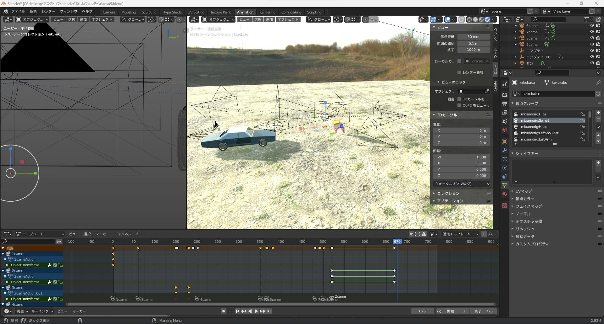 この指示が消えてしまった、正確には非表示になってしまったわけですね。アニメーションはなくなっていないので、キーフレームは消えてはいないはずですが、キーフレームを操作できない状態になっているのでアニメーションの調整ができません。
