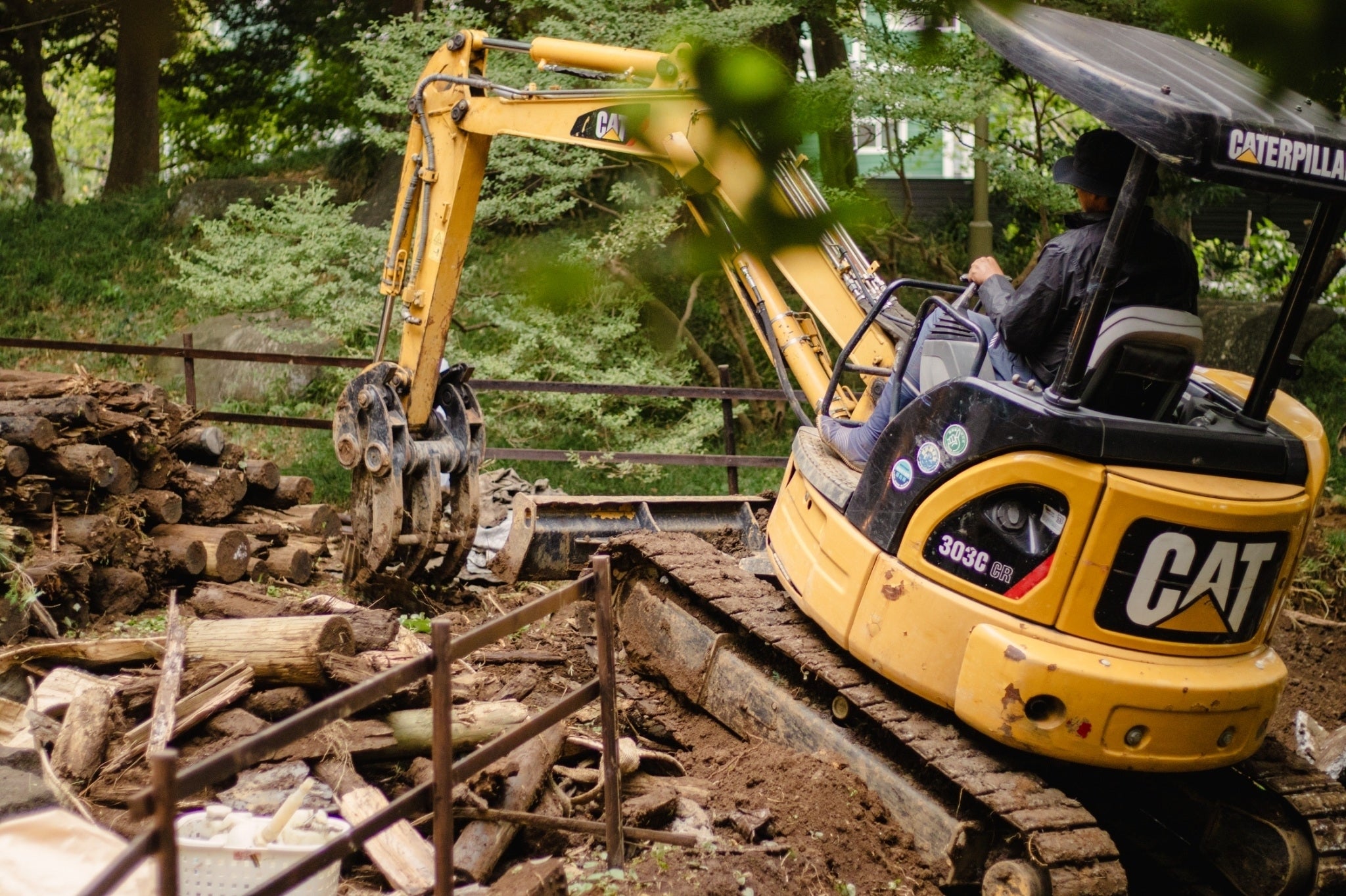 少しずつではありますが着々と工事が進んでます。第一段階は森の中央にあった池の穴埋め作業からです。コンクリートの上の堆積した泥を除去し・・・底部分のコンクリートを粉砕 。粉砕したコンクリートも再利用します。